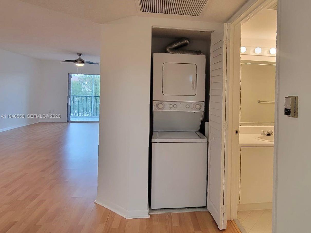 Welcome to your spacious 2-bed/2-bath condo in peaceful CENTURY VILLAGE FALMOUTH AT PEMBROKE PINES. Enjoy a split floor plan, a large balcony with garden and pool views, a master bedroom walk-in closet, laminated wood flooring, an eat-in kitchen, and an in-unit washer and dryer. Freshly painted and ready to move in. Relax on the tranquil third floor, easily accessible by elevator. Residents can enjoy a variety of clubhouse activities, including billiards, bingo, card games, classes, computer room access, and dances. Outdoor amenities include BBQ areas, tennis courts, and walking paths. Century Village is a gated community with 24-hour security, a medical alert system, and in-house bus transportation to local malls and shopping centers. RENT INCLUDES: water, sewer, waste, internet, and cable.1 person must be minimum 55 years old and others 18+ per association.