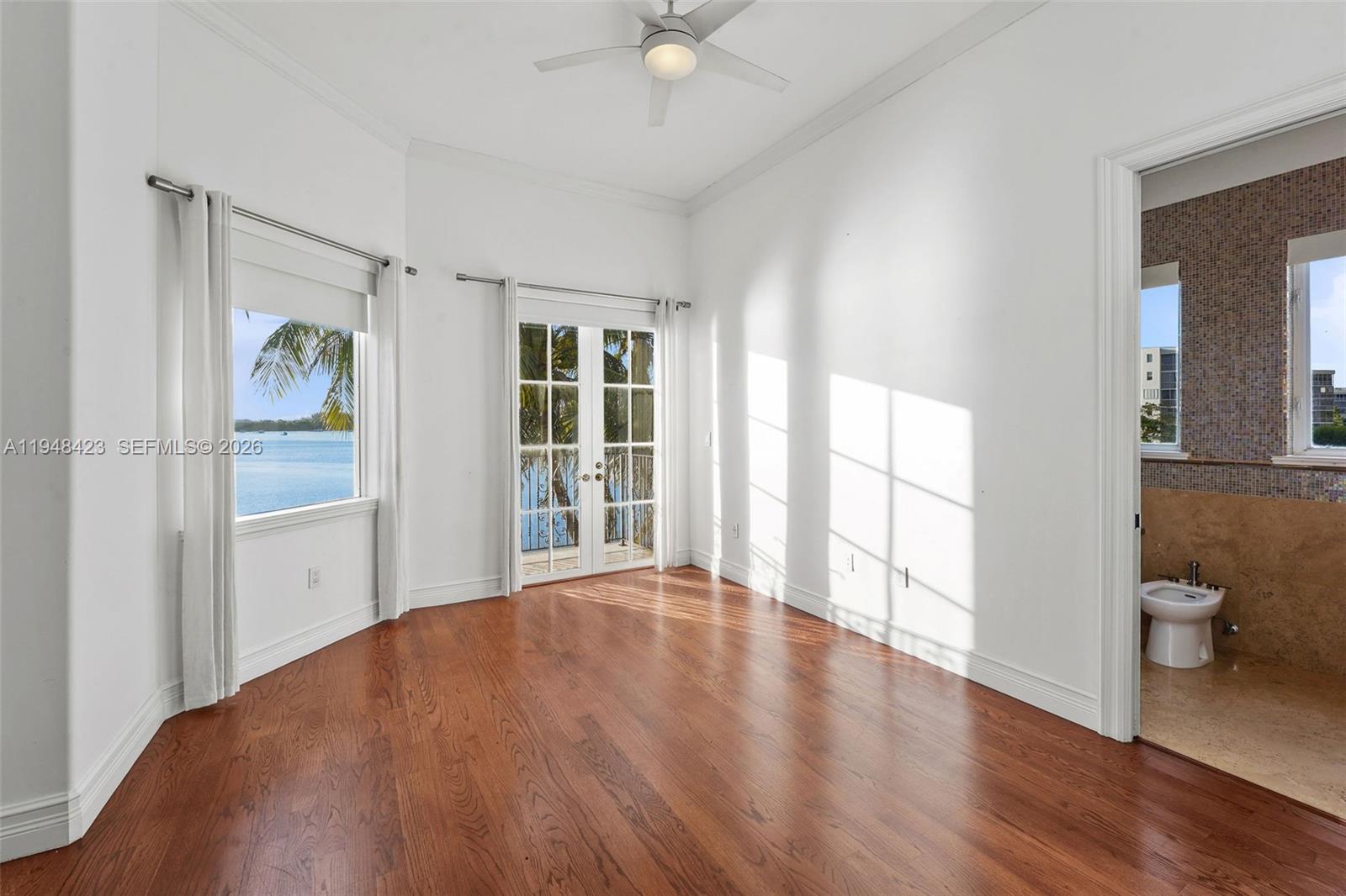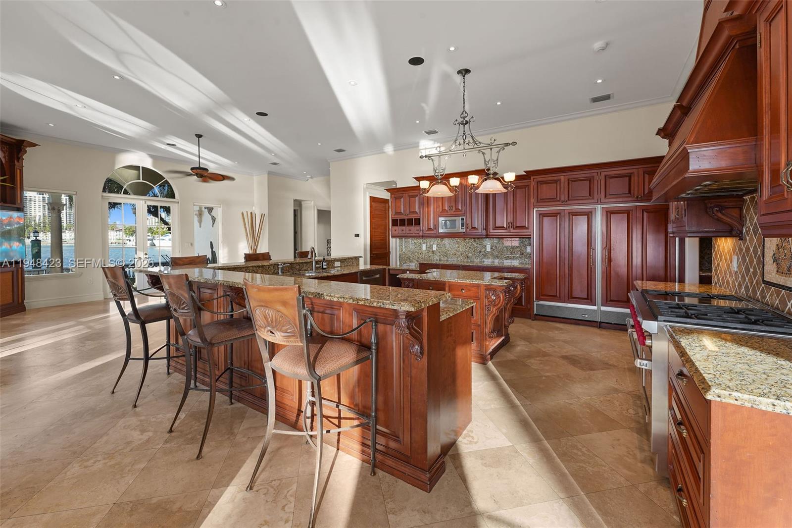 Waterfront point lot with spectacular views, with a grand home boasting high ceilings and large, spacious rooms. This sprawling home is perfect for entertaining and family-friendly, with an extra-large kitchen, an open floor plan, and water views. The entertainment extends into the backyard with a pool and bar area. The private dock has easy access to the Intracoastal and can accommodate larger boats without blocking the view from the home. The house has a maid's quarters with a full bathroom. The garage is spacious, and the property is gated. The home is a must-see. Unfurnished, freshly painted inside and out, it is available for immediate occupancy. Close to shops and restaurants. Great location.