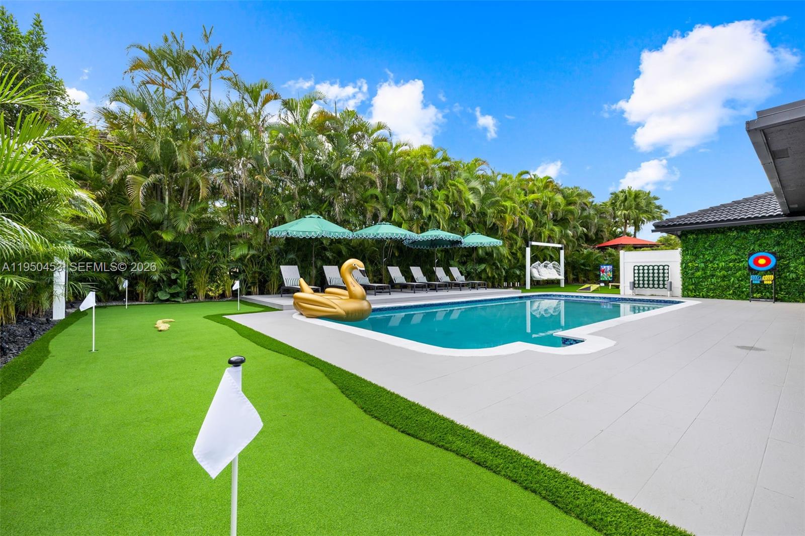Experience unmatched luxury in this meticulously remodeled home with high end finishes and professionally designed interiors. This 4 bedroom 2 bath single family residence is an entertainment paradise in Coral Springs and is ready to move in. The modern open layout features a full chefs kitchen, electric fireplace, and impressive 85 inch TVs, ideal for everyday living and hosting. The resort style backyard offers a heated pool, hot tub, outdoor fire pit, BBQ, mini golf, and premium artificial turf designed for low maintenance convenience. The home comfortably sleeps up to 12 guests and includes convenient in home laundry along with a spacious 2 car garage that can also be used as a gym or flex space. Ideally located near top malls, restaurants, parks, and major roadways. 60 day or longer rentals welcomed. Available furnished at 8500 per month or unfurnished at 8100 per month.