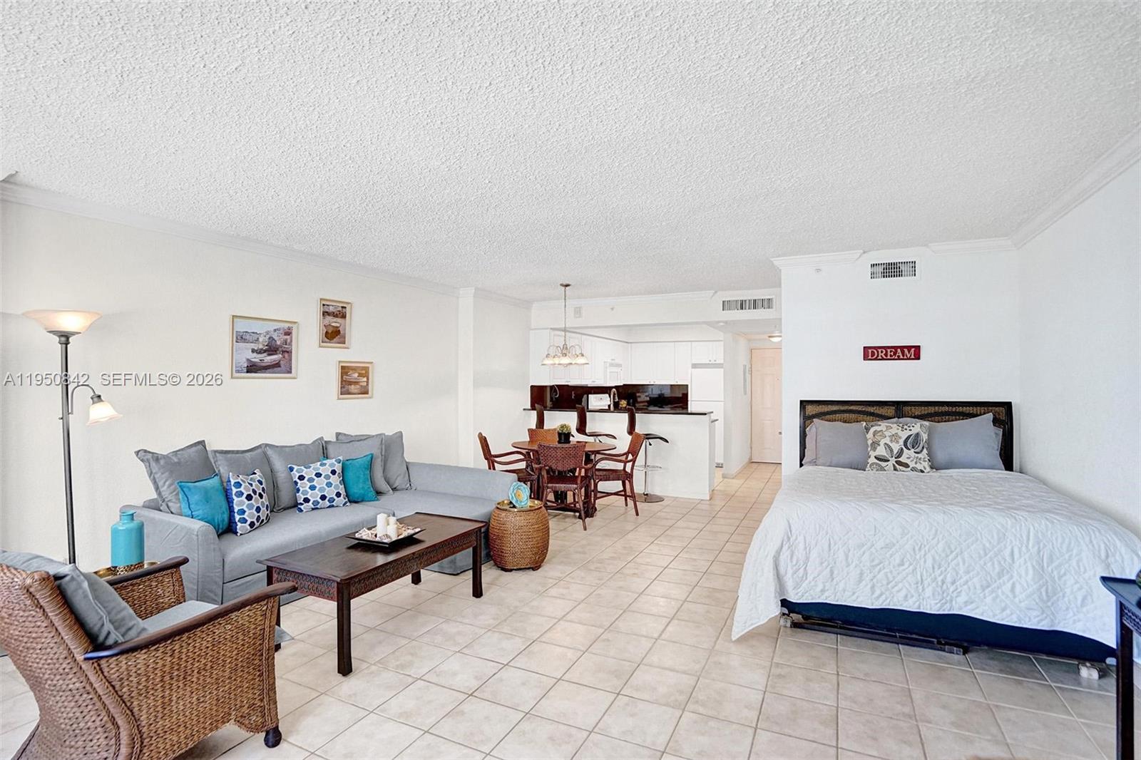 Available January 30, 2026 for Annual Rent. Bright and spacious furnished Studio with breathtaking ocean & intracoastal views available for Seasonal rent. This studio does not have a balcony. Experience The Wave Lifestyle - one of the finest and most exclusive Luxury buildings on the Beach for the price value. Great amenities: Newly remodeled Resort style pool deck with lash palm trees, fountains, Jacuzzi and GYM overlooking the ocean and complimentary Beach services