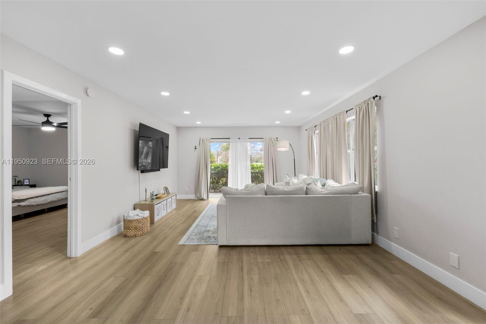 Live well at this fully remodeled 2 bedroom/2 bath first-floor condo with abundant storage. Features four walk-in closets, including one by the kitchen that can be used as a pantry or extra storage. Bright corner unit with added privacy and no stairs or elevators needed to access the unit. Enjoy a screened-in balcony with direct access to the pool area and garden views. Open floor plan, large living area with neutral laminate flooring throughout. Kitchen has all new stainless-steel appliances, stove/oven, microwave, dishwasher, fridge and garbage disposal. Unit is assigned 1 parking space right in front of the unit with plenty of guest parking spaces. Rent includes water, sewer, garbage, Comcast Cable TV & High speed internet, pest control, pool service, and exterior maintenance. Enjoy peaceful garden views, abundant natural light, and a quiet setting in a gated community with 24-hour security. Schedule your appointment today!