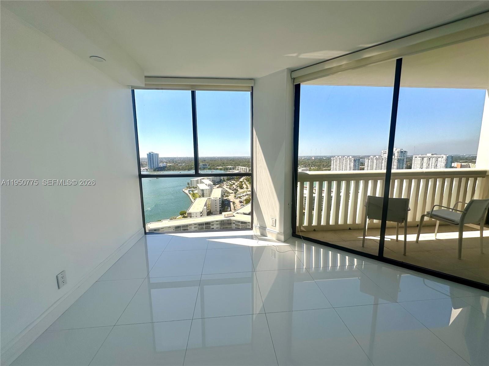 GORGEOUS HIGH FLOOR 2/2 unfurnished unit with tile floors throughout, stainless appliances, oversized master bedroom with amazing closets. Beautiful water view from bedroom and terrace. Gorgeous building, renovated w/ wonderful amenities as gym, bbq area, private pool, billiards/game room, party room, tennis, concierge, 24h valet.