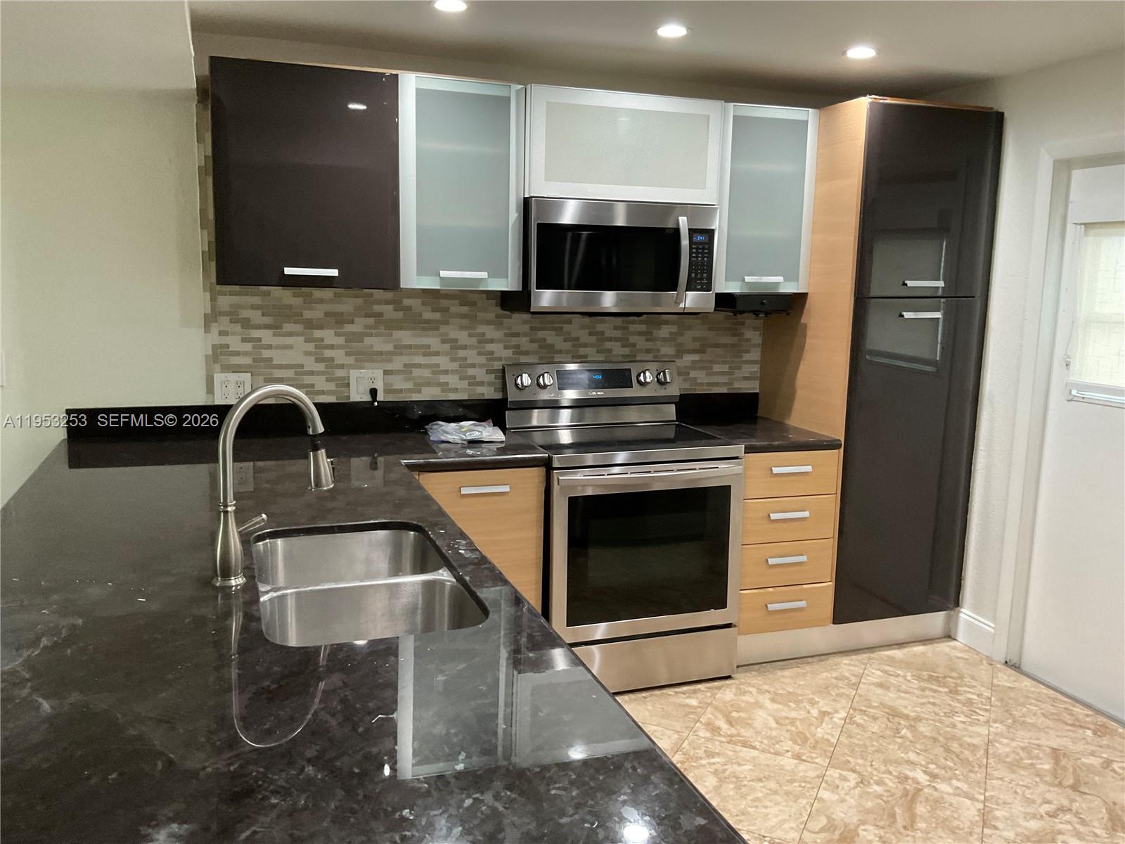 Amazing views from this beautiful updated waterfront home. Two second floor bedrooms, both offering en suite bathrooms. Main floor has a spacious open plan living room kitchen , along with guest half bath Walk to shops, restaurants, houses of worship, and of course, the nature Park oleta. Enjoy the close proximity of Sunny Isles Beach and all that it has to offer Unit offers extra storage, inclusive of full-size washer and dryer One reserve parking space along with a guest space