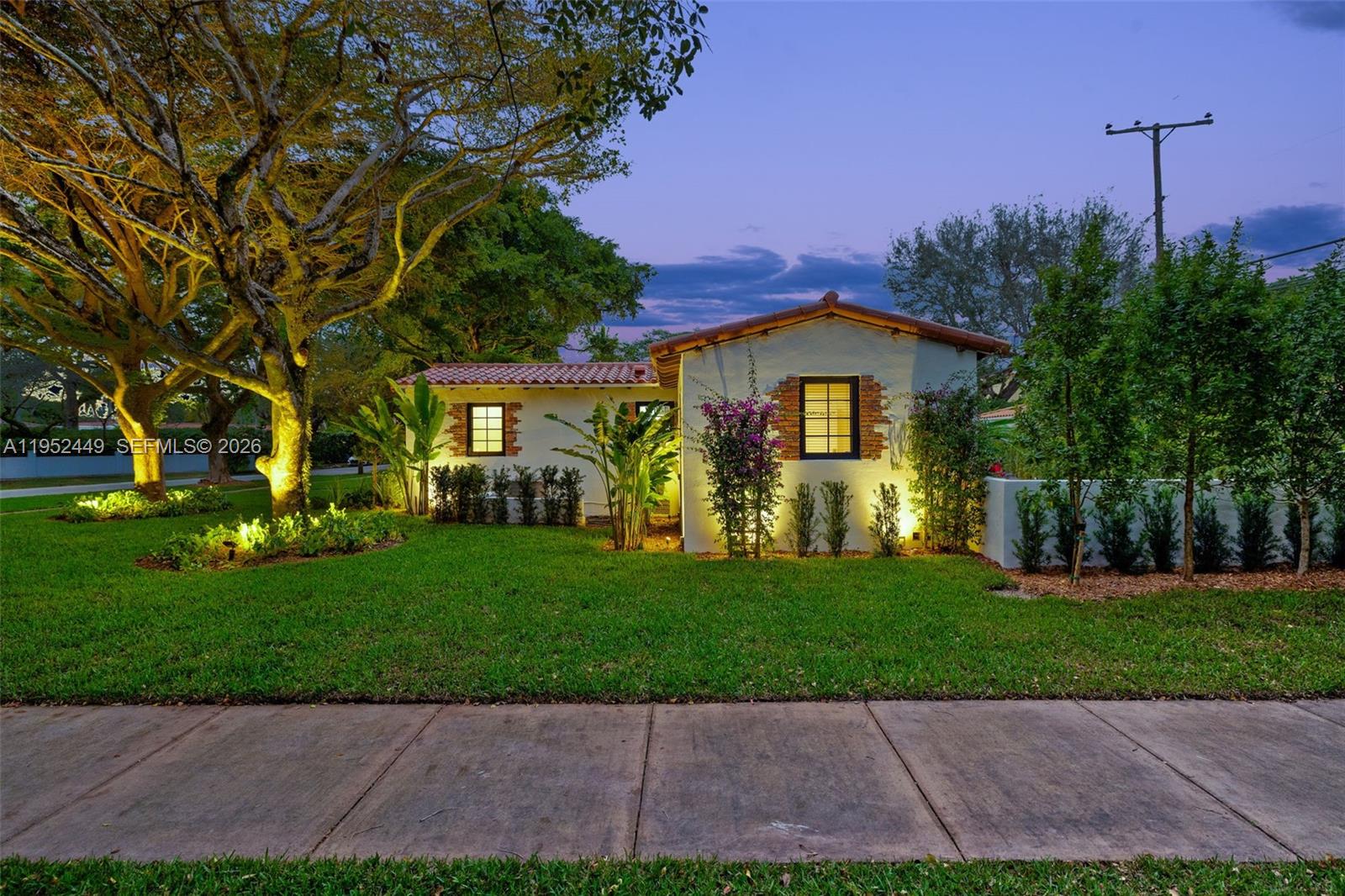 [A Miami Signature Home] Nestled in the heart of the coveted Golden Triangle, this storybook, historically designated 3/3+office home is a true gem where timeless charm meets modern luxury. Fully restored and move-in ready, this one-level residence offers effortless living with thoughtful updates throughout. Soaring cathedral ceilings, impact windows and doors, and impeccably designed spaces exude warmth and character at every turn. The home features three zones of air conditioning, ensuring year-round comfort, while the luxe garage is a standout in its own right. This fully finished space boasts custom cabinetry, a refrigerator, sink, washer, and dryer—and it’s EV-ready, so bring your electric cars! Whether you’re dreaming of a man cave, workshop, or something else entirely, this space is ready to deliver. Every detail has been considered to make this home as functional as it is beautiful. Situated in a prime location, you'll enjoy unparalleled convenience to everything—shops, dining, parks, and more. Don’t miss the opportunity to lease a piece of history in one of the most sought-after neighborhoods in town!