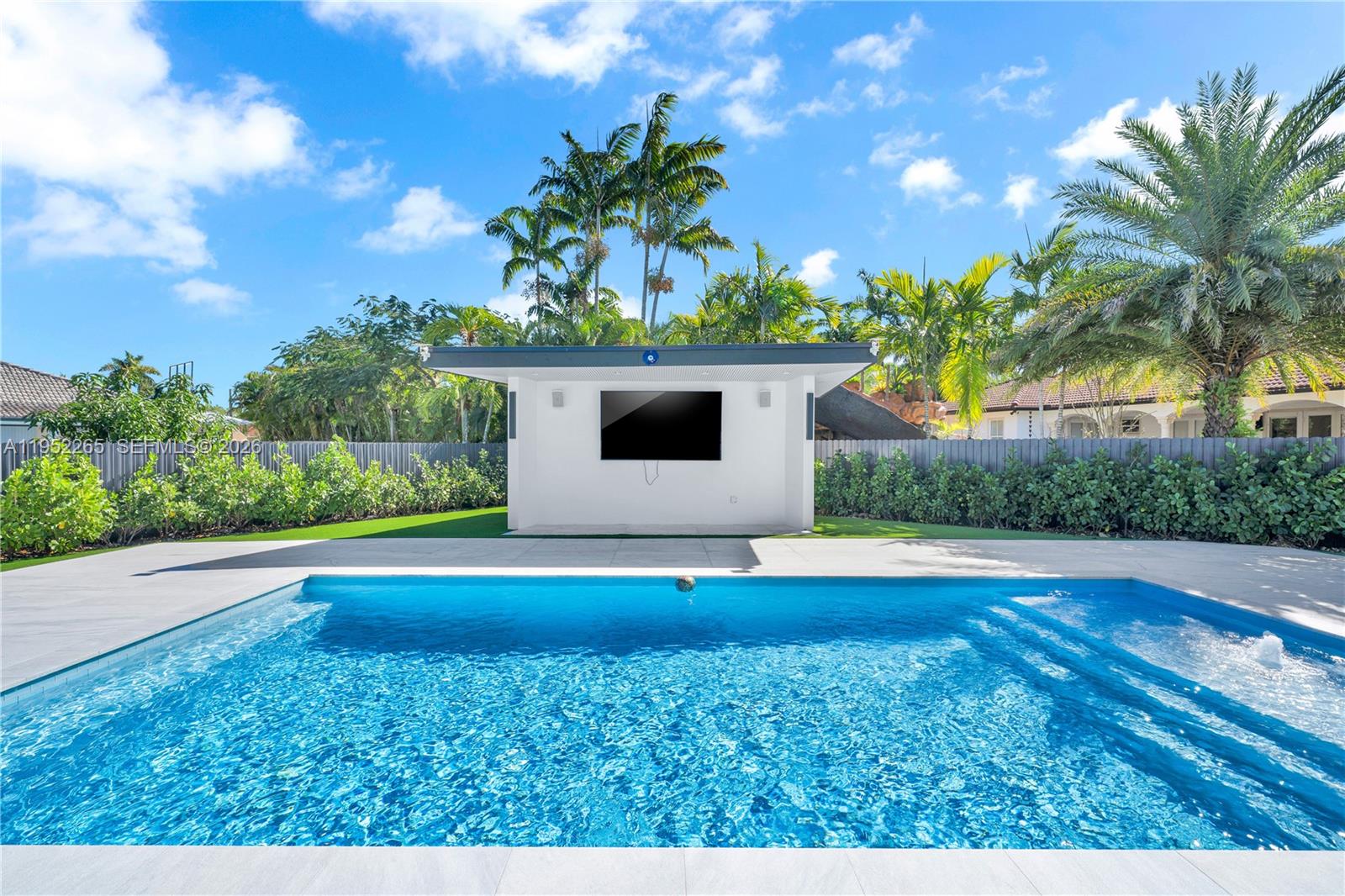 Stunning fully remodeled luxury residence featuring a sleek modern design, high-end finishes, and premium appliances throughout. The main living area offers 7 bedrooms and 5 full bathrooms, highlighted by soaring ceilings, abundant natural light, and an open-concept layout designed for both comfort and sophistication. The gourmet kitchen showcases custom cabinetry, an oversized island, and top-of-the-line appliances—ideal for entertaining and everyday living. Spa-inspired bathrooms feature contemporary vanities, designer fixtures, and elegant walk-in showers. Step outside to a resort-style backyard with a heated swimming pool, expansive covered patio, and a rare oversized lot, perfect for outdoor dining, relaxation, and year-round entertaining. The property is fully fenced, providing excellent privacy, and is situated in a quiet, highly desirable neighborhood. Please note that the garage and the right-side portion of the property are not included in the lease. This turnkey home presents an exceptional rental opportunity for tenants seeking luxury, space, and tranquility in a refined living environment. See Broker Remarks.