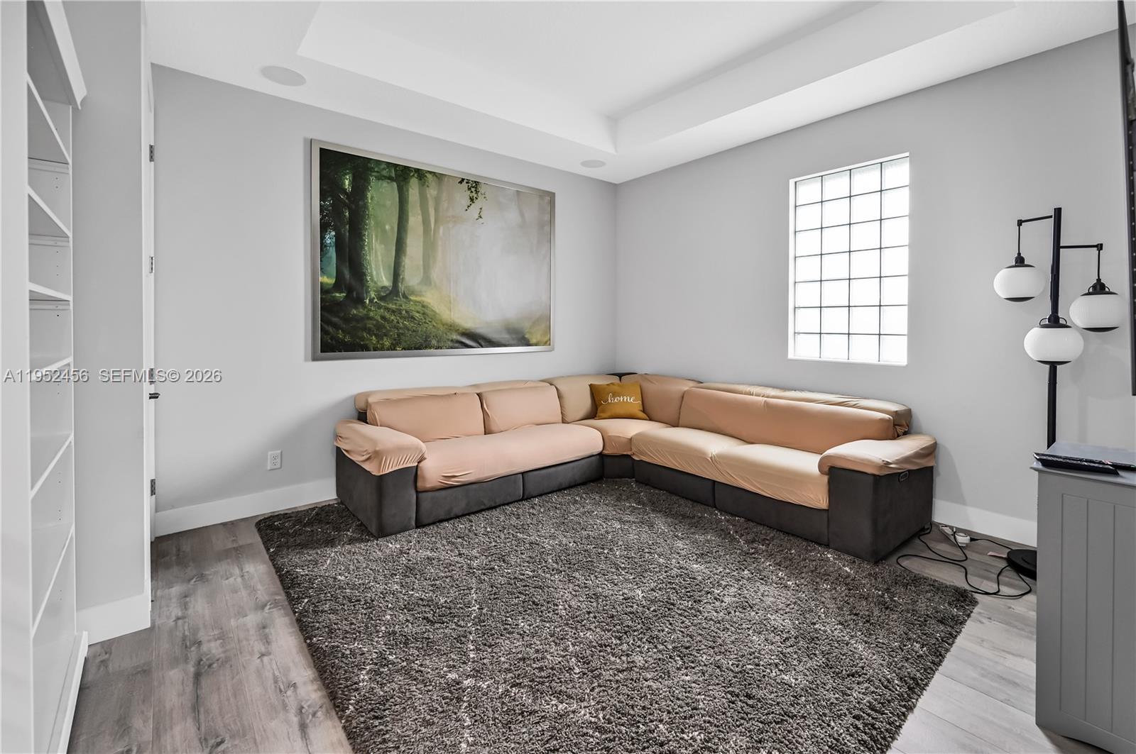 Beautifully upgraded 5-bedroom, 4-bath single-family home located in the desirable gated community of Coral Lago. This spacious two-story residence offers over 3,000 sq ft of living space with modern finishes throughout. Features include quartz countertops, porcelain flooring on the first level, wood laminate flooring upstairs, impact windows and doors, and custom zebra shades that fill the home with natural light. The oversized primary suite boasts a luxury custom walk-in closet and a spa-style bath. Additional living spaces include a den/office, loft, and family room. Large kitchen with pantry and ample storage. 2-car garage. Community amenities include clubhouse, pool, fitness center, playground, and on-site management. Conveniently located near The Walk at Coral Springs, A Shul near by, with easy access to Sawgrass Expressway and Sample Road. Furnished and move-in ready.