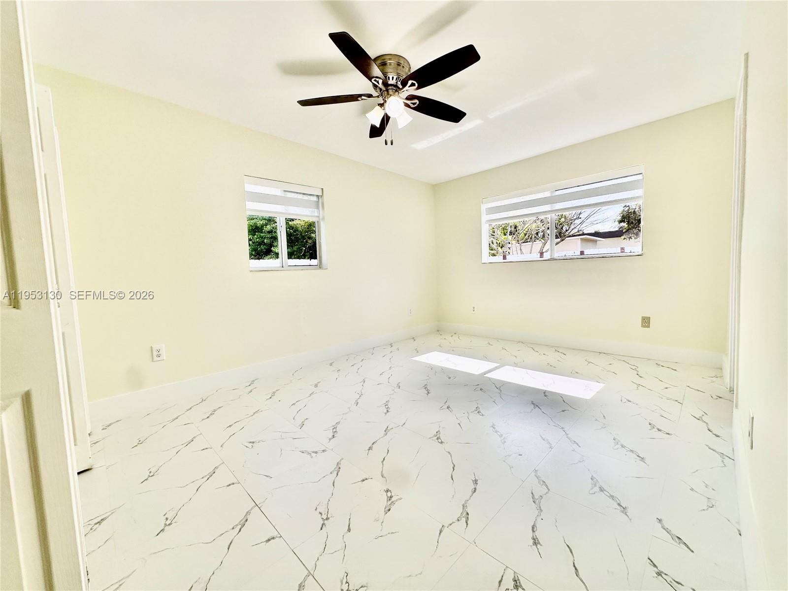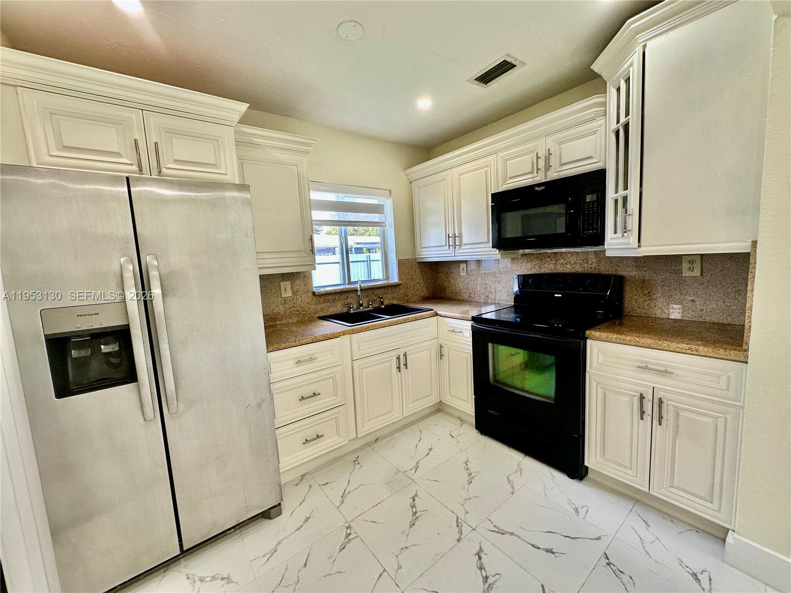 Beautifully remodeled one-story rental featuring fresh paint, stunning marble-style laminate flooring, and modern recessed lighting throughout. This home offers a private driveway, covered carport, and a welcoming walkway leading to the front entrance. Enjoy a spacious fenced backyard with sleek white aluminum fencing, lush tropical trees, plenty of grass, and a covered patio terrace—perfect for relaxing or entertaining. A kids’ playground and swing set are included. The interior boasts new zebra blinds, a smart thermostat, washer and dryer, and a kitchen equipped with a refrigerator featuring an ice maker and water dispenser. Bathrooms include tubs with handicap rails and rainfall shower heads for added comfort and accessibility. Each bedroom is generously sized with large closets. NO HOA. Fast approval and move-in ready ASAP. ONLY TWO MONTHS REQUIRED! (First & Deposit) Prime location within walking distance to Miami Heights Elementary and Robert Morgan Educational Center. Close to Eureka Park, Larry & Penny Thompson Memorial Park & Campground, shopping centers, gyms, gas stations, and major attractions including Zoo Miami.