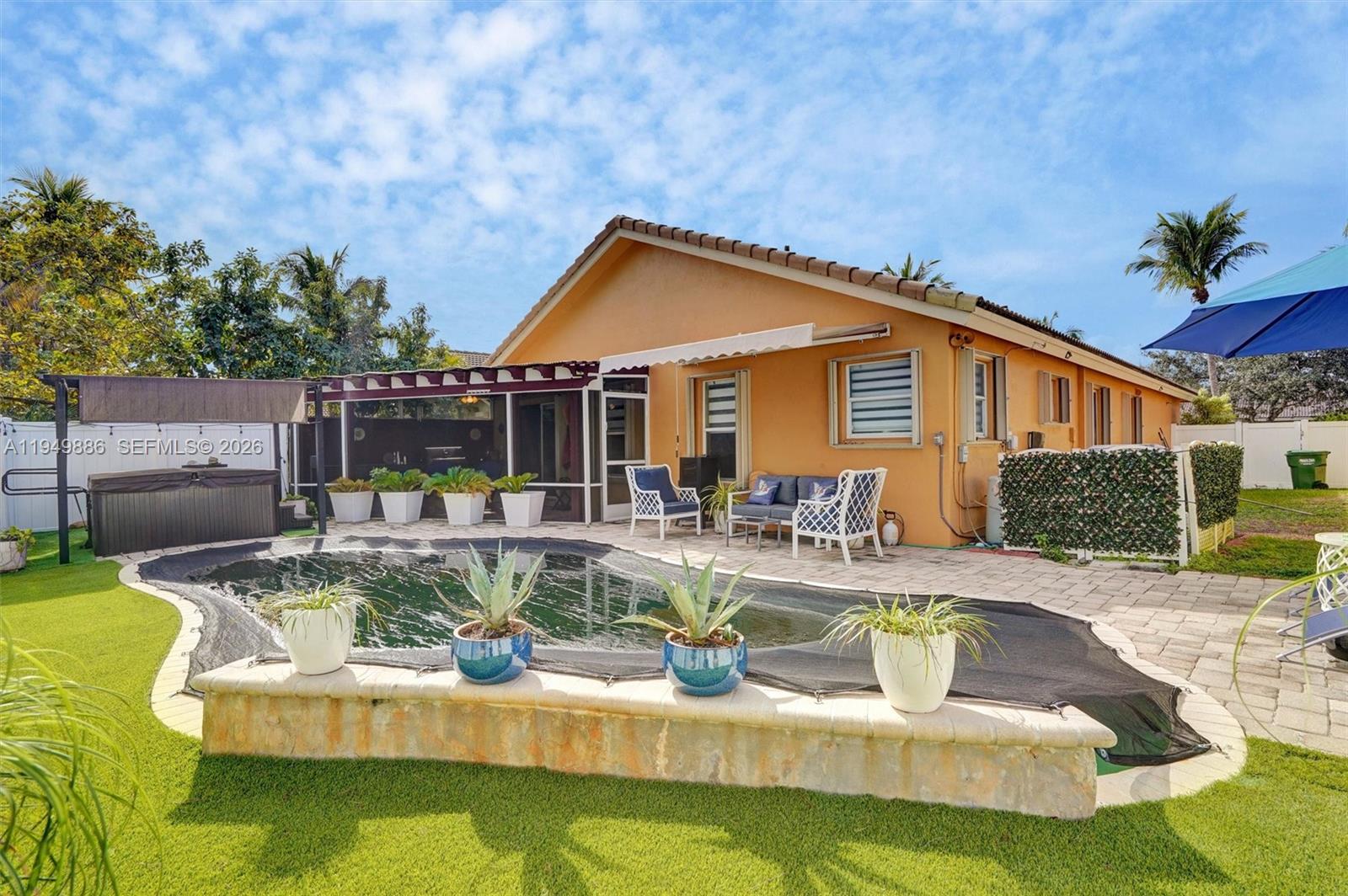Beautifully updated 3-bedroom, 2-bath single-family residence offering a bright, open layout with abundant natural light. Features brand-new flooring throughout, an upgraded kitchen with granite countertops and stainless steel appliances, stainless steel appliances, and a front-load washer and dryer. Select windows are equipped with automated blinds for added convenience. The owner’s suite includes a spa-style bathroom with a standalone soaking tub and separate shower, while the second bathroom has been tastefully updated. Enjoy outdoor living with a screened patio, private pool, covered hot tub, and monthly pool maintenance included in rent. Located in an area served by A-rated public and charter schools. A turnkey home ideal for comfortable living and entertaining.