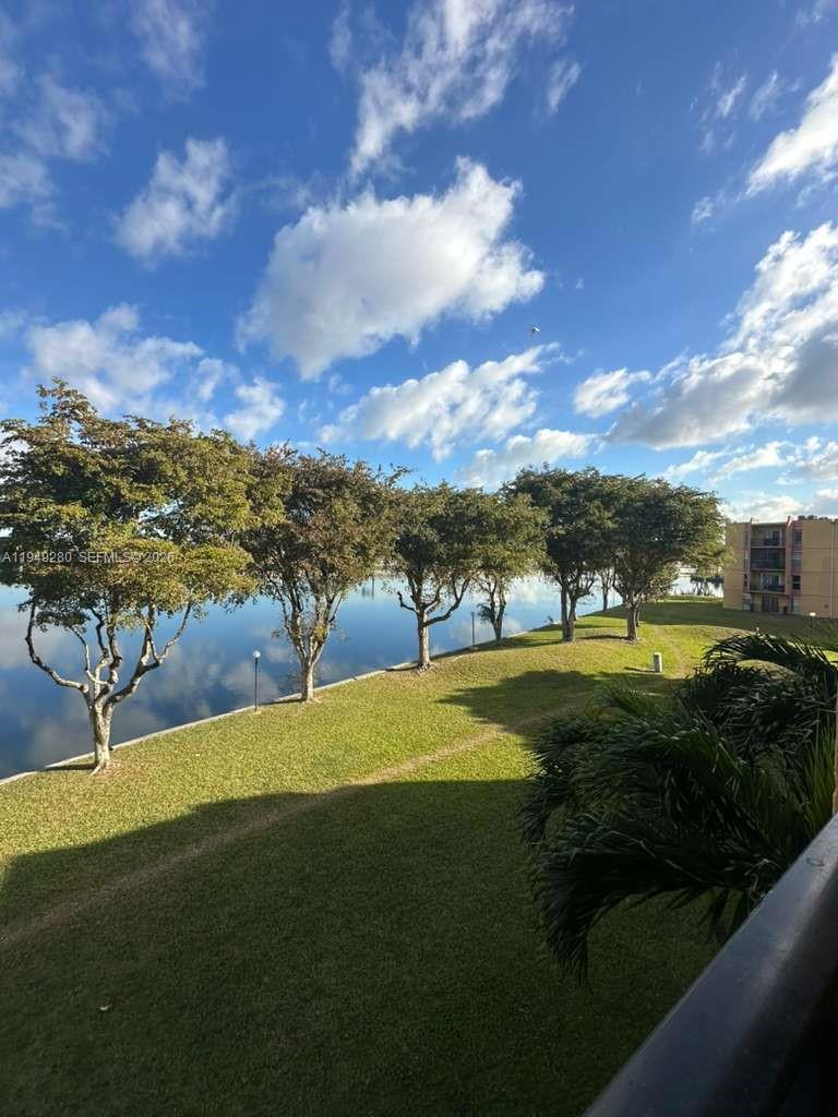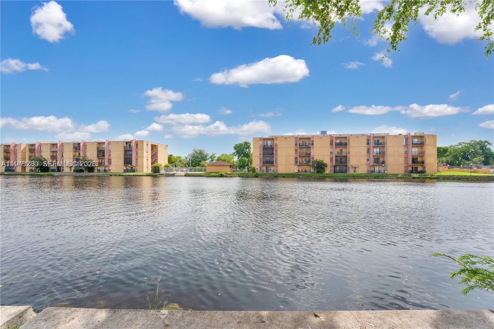 LAKE VIEWS! This amazing 2-bedroom apartment offers a stunning view of the lake. It has a fully remodeled kitchen and bathrooms, as well as tiled floors. The sliding door has hurricane shutters and new impact windows were installed in the bedrooms. You'll also have one assigned parking space. The complex has a range of amenities, including a pool, kids' play area, tennis courts, and a clubhouse. This unit is situated within a secure, gated community featuring controlled access and monitored by a dedicated security guard stationed at the entrance. For added safety, the building's hallways are equipped with surveillance cameras.