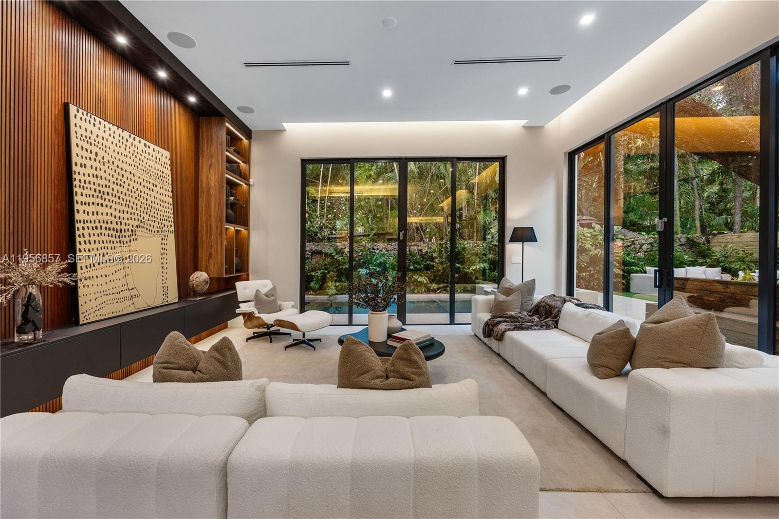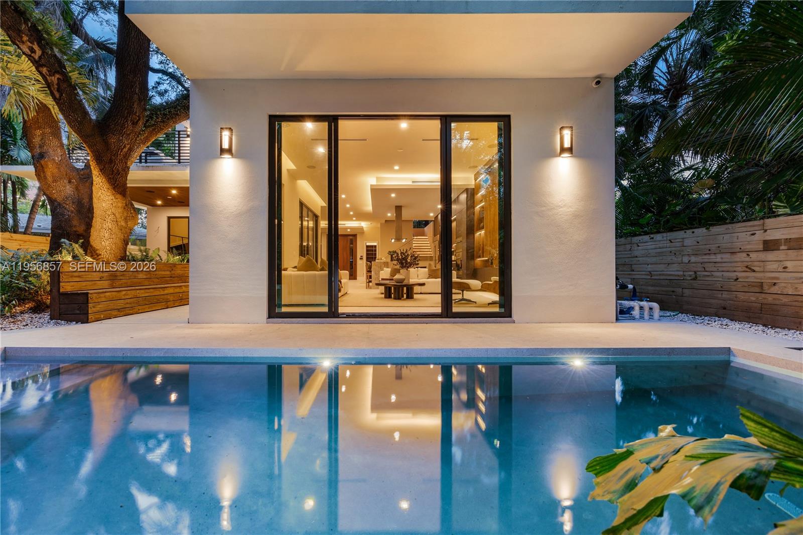 Northeast Coconut Grove is prized for its lush, tree-canopy streets, bayside parks and marinas, and a true “village” lifestyle—close to CocoWalk, celebrated dining, boutique shopping, weekend markets, and top-rated schools, with easy access to Metrorail and Downtown/Brickell. Stunning newer-construction 5-bedroom, 5.5-bath home that blends clean modern design with seamless indoor/outdoor living. Bright, open interiors with expansive sliding glass, designer finishes, and an entertainer’s chef’s kitchen with premium appliances and an oversized island. Elevator, ample storage, and a 2-car garage add everyday convenience. The backyard is a private tropical retreat under a majestic oak, featuring a narrow rectangular plunge/lap-style pool with an attached raised square spa and spillover water feature at the far end, plus a summer kitchen for effortless al fresco dining and entertaining. New furnishing is being updated by 02/13.