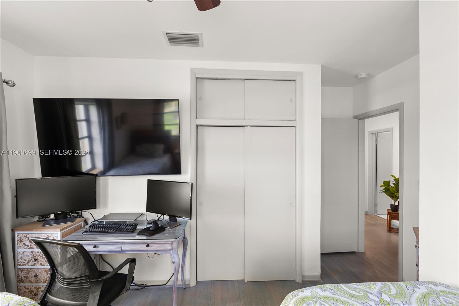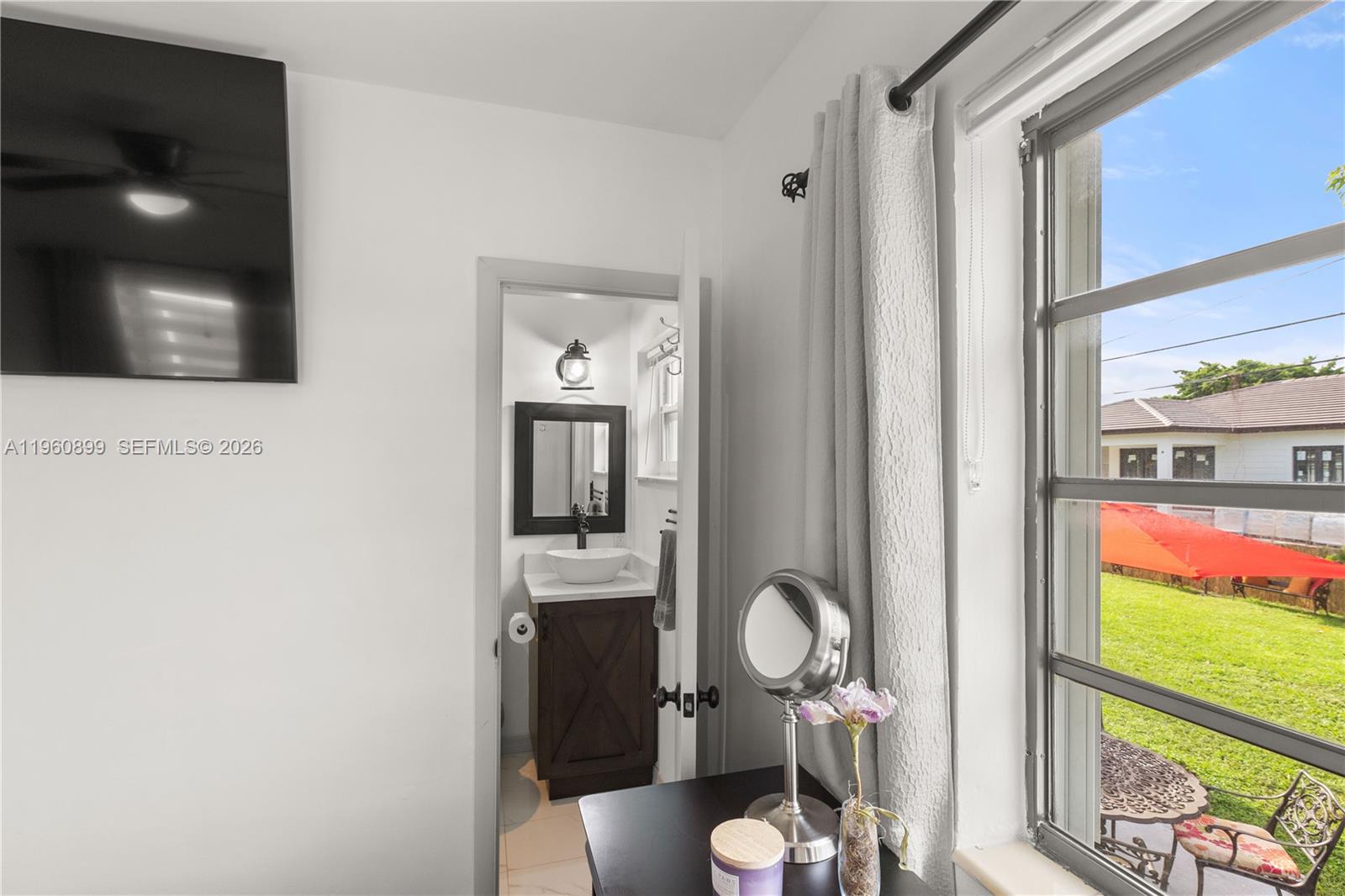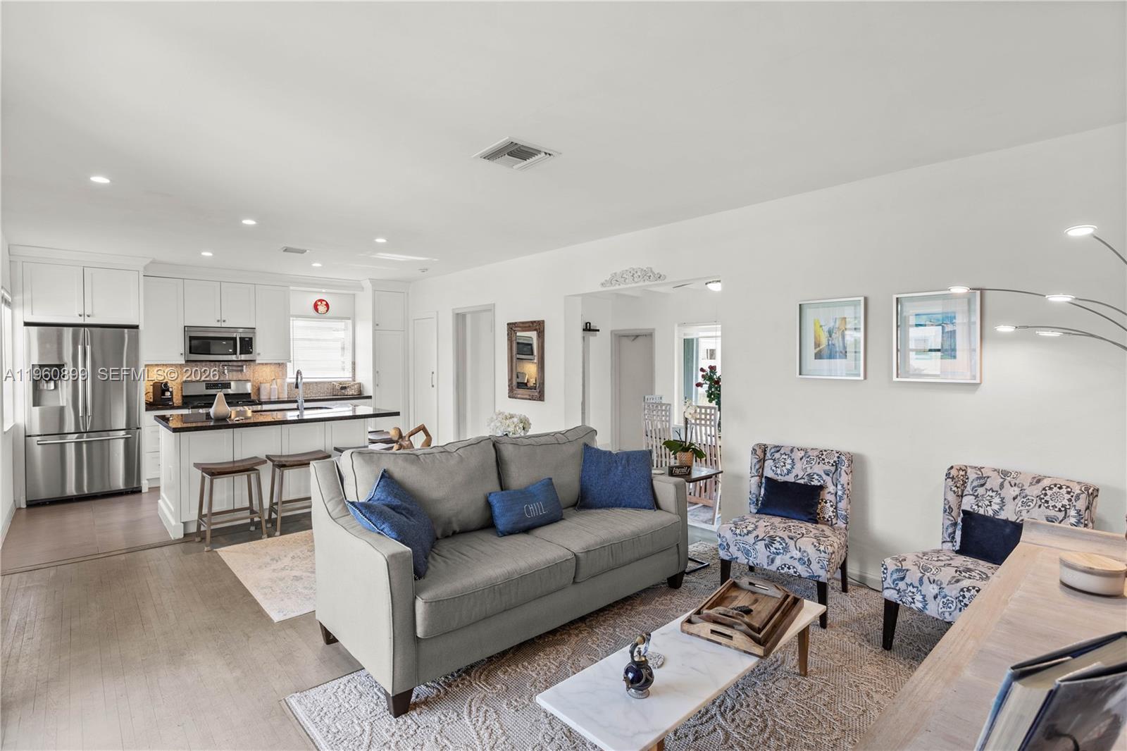 Fabulous fully remodeled 3/2.5 single family home in highly sought after school area. Walking distance from top public & private schools. Open floor plan, solid hardwood floors and ceramic tile. Kitchen features modern custom cabinets, Samsung stainless steel appliances, five burner gas stove, dishwasher & French door refrigerator. Kitchen island seats 5 and provides additional storage to the two built-in pantries. Behind the stylish double barn doors you will find the guest bathroom & laundry with full size washer, dryer and tankless water heater. Spacious fenced-in back yard is great for entertaining & for kids to play. Actual area is 1,417sqft & adjusted area is 1,329 sqft.