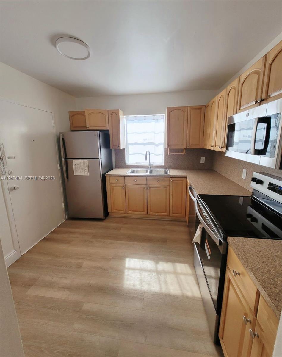 Very spacious 2/2 in heart of North Miami Beach, lovely view! Beautiful floors throughout and wood cabinets in the kitchen. NEW FLOOR NEW APPLIANCE NEW LIGHTS AND CABINETS. Both bathrooms have tile in the shower. No carpet, Minutes to the Sunny Isles Beaches and Aventura Mall. Enjoy the Florida lifestyle! ASSOCIATION IS WORKING ON THE PLUMBING, NOW ONLY ONE TOILET IS AVAILABLE, AFTER FINISHING INSPECTION, ASSOCIATION WILL PUT TOILET BACK AND PAINT LIVING ROOM WALL.