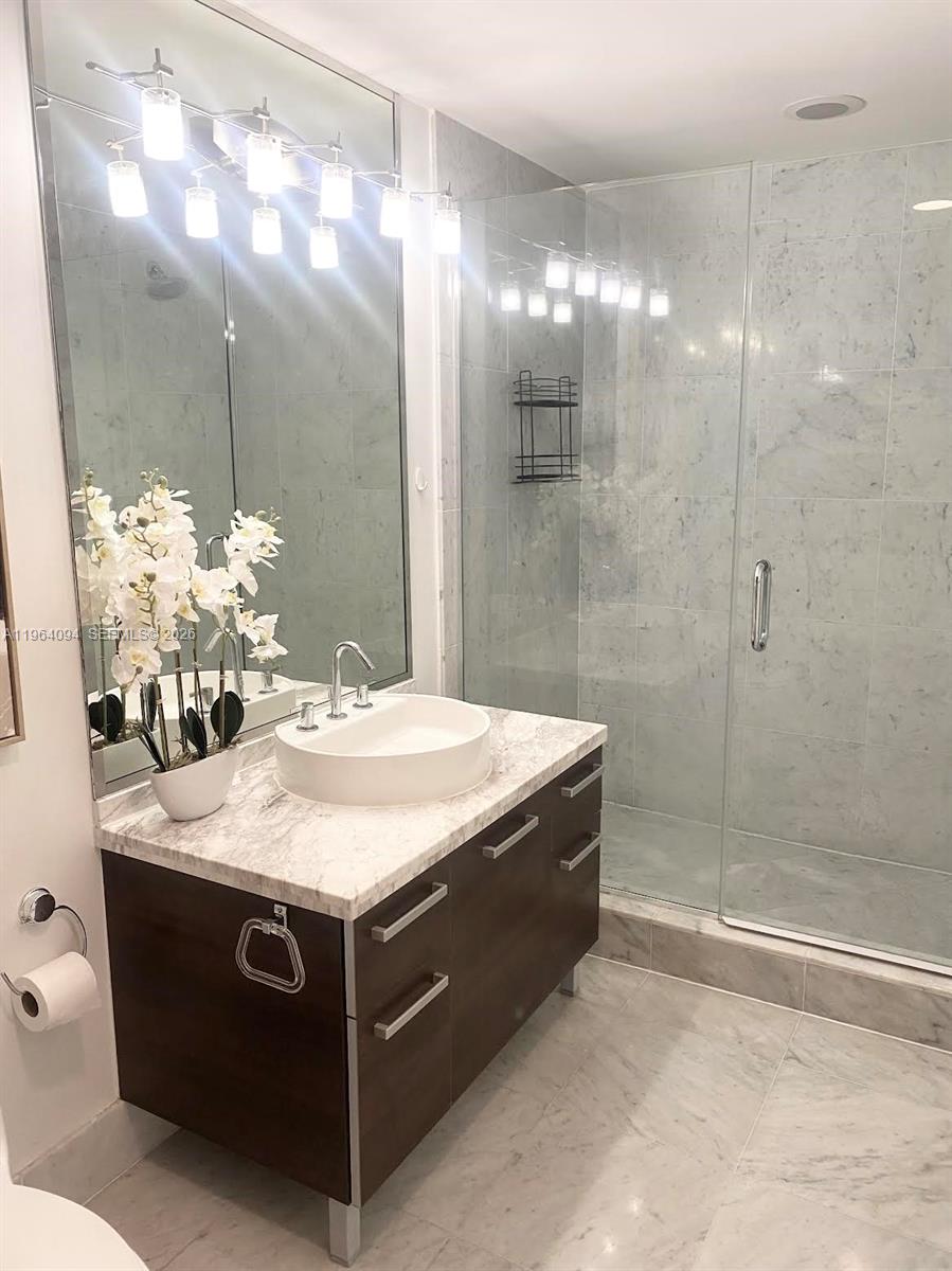 Enjoy breathtaking ocean and city views from this beautiful 1-bedroom condo! This fully renovated residence features floor-to-ceiling windows, sliding glass doors with balcony access from every room, high ceilings, seamless indoor-outdoor living and abundant natural light. The open-concept kitchen is ideal for entertaining, showcasing European-style cabinetry, and stainless steel appliances. Recent upgrades include renovated kitchen, new refrigerator, new dishwasher, renovated bathroom, updated ceiling lighting, a custom accent wall in the living room, and new A/C system. The primary suite offers a walk-in closet and marble bathroom. Porcelain tile flooring runs throughout, plus a separate utility closet with washer and dryer. Vizcayne provides resort-style amenities including four pools with sun decks (three currently being renovated but expected to open soon), spa, fitness center, running track, theater, billiards, party and meeting rooms, business center, garage parking, and 24-hour concierge. Residents also enjoy complimentary fitness classes currently including Yoga, HIIT, Pilates, and more. Prime Downtown location across from Bayfront Park and minutes to South Beach, museums, Adrienne Arsht Center, Bayside Marketplace, Kaseya Center, Miami World Center, Miami Dade College, and Brickell City Centre.