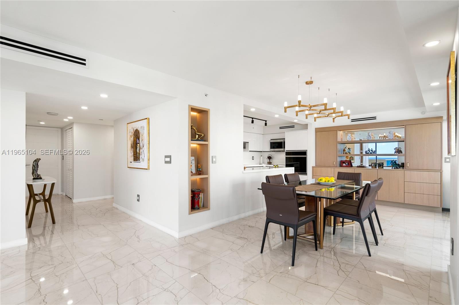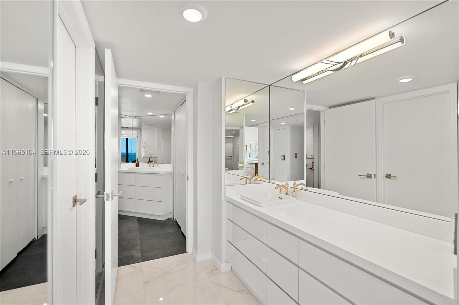 Oceanfront corner residence at L’Excellence with direct ocean views from every room, offering an exceptional 1,980 interior square feet. Floor-to-ceiling impact glass frames uninterrupted Atlantic views throughout the home, filling the interiors with natural light from sunrise to sunset. Three expansive terraces - including a wraparound balcony and a private oceanfront terrace off the primary suite - further immerse the residence in the surrounding seascape. Marble flooring flows throughout, complementing a thoughtfully designed layout featuring two spacious bedrooms, each with its own en-suite bath, plus a powder room for guests. The primary suite offers a generous walk-in closet and direct terrace access overlooking the ocean. A separate laundry room enhances functionality. Set directly on the sand, L’Excellence offers beach service, pool, jacuzzi, fitness centers, sauna and steam rooms, valet, attended lobby, and 24-hour security.
