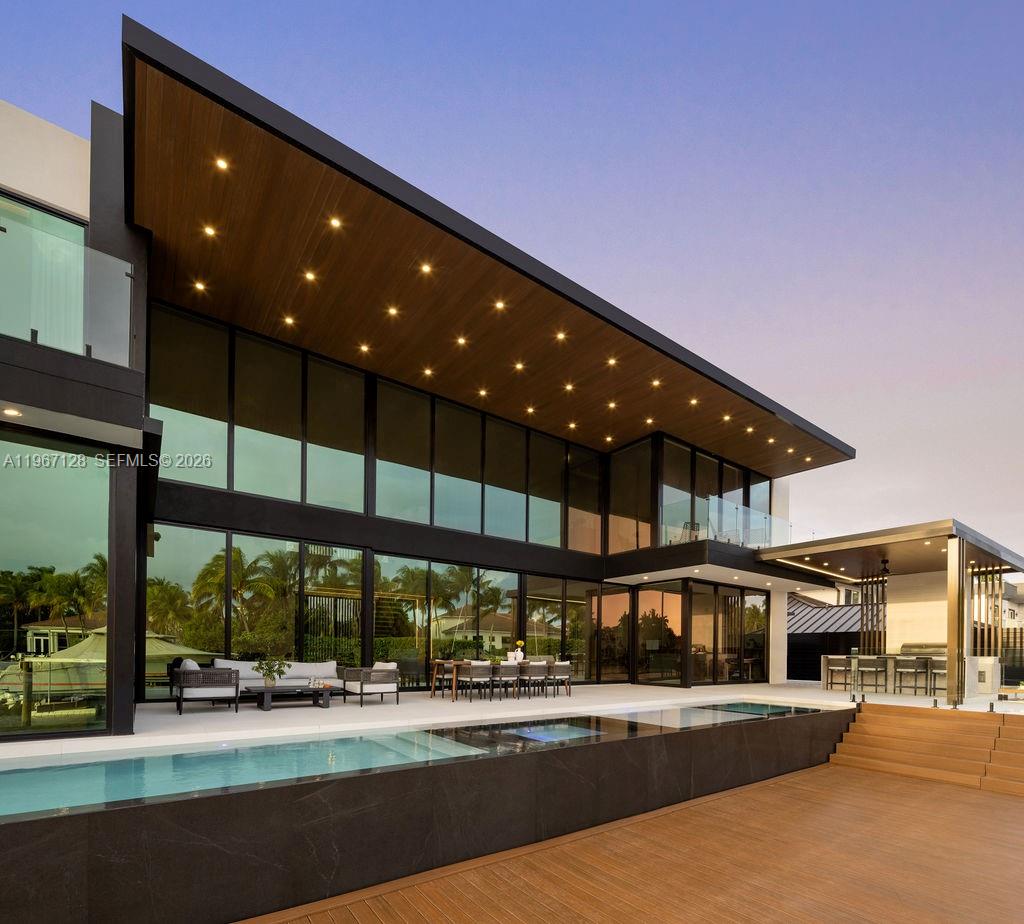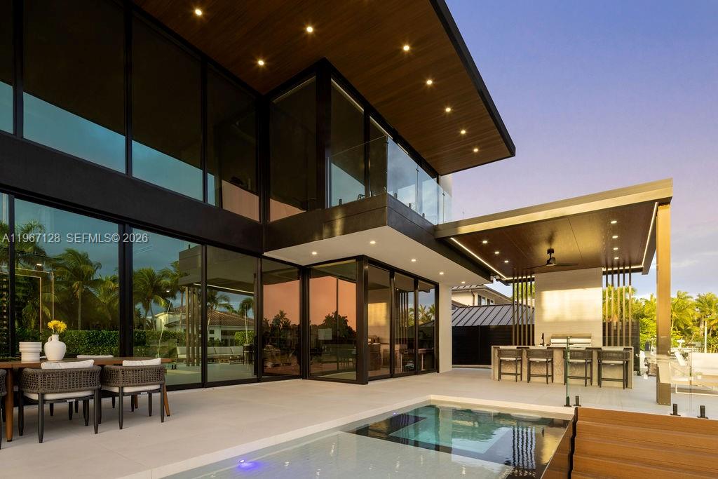 Brand-new two-story waterfront home with 100 feet of water frontage, direct ocean access, and space for up to a 120-ft yacht with boat lift. Open floor plan with 6 bedrooms and 5.5 bathrooms. Resort-style pool with swim-up bar and stools, hot jacuzzi, separate cold plunge, and kids’ shallow play area. Outdoor kitchen with premium grill, cooler and ice maker, large pantry, open kitchen, 2 dishwasher, 4 washers , 3 dryers, automatic iron machine. Whole-home surround sound (indoor and outdoor). Dual whole house water filtration system, large second-floor balconies. Covered 2-car garage. Playground with premium safety turf.