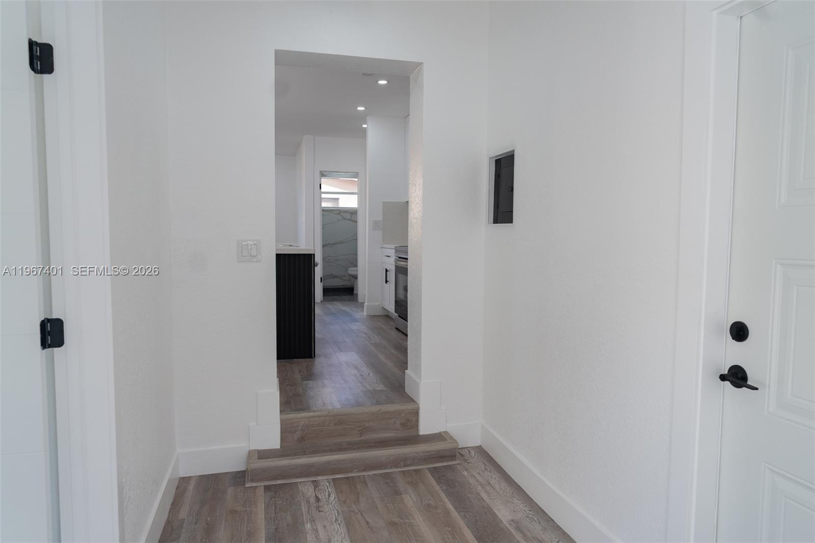 Fully Renovated 4 Bedroom, 2 Bath single-family home ONLY 20 minutes from the Hard Rock Stadium! Larger than what appears on tax records (1517 sq ft). This property features a brand-new shingle roof, new high-efficiency central A/C, and a new Titan tankless water heater. The interior has been freshly painted and showcases a new modern kitchen with quartz countertops, new stainless steel appliances, and durable vinyl wood flooring throughout. Spacious primary bedroom with an en-suite bathroom. Enjoy a spacious fenced-in backyard with multiple mature fruit trees, ideal space for outdoor entertaining. The property also features a shed for additional storage and tools. NO Association!