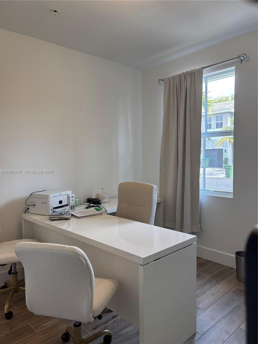 Welcome to Merrick Square gated community at Pembroke Pines. Beautiful corner 2 story townhouse 4 bedrooms & 3 bathrooms, 1 bedroom on 1st floor and a full bath frameless shower. Open kitchen concept equipped with stainless steel appliances, quartz countertops, beautiful cabinetry in white color. 1 car garage plus 2 more parking spaces in driveway. On 2nd floor ample master bedroom with an ample walk in closet, master bathroom with his & her sink & frameless shower. 3rd bathroom has a tub. laundry room.