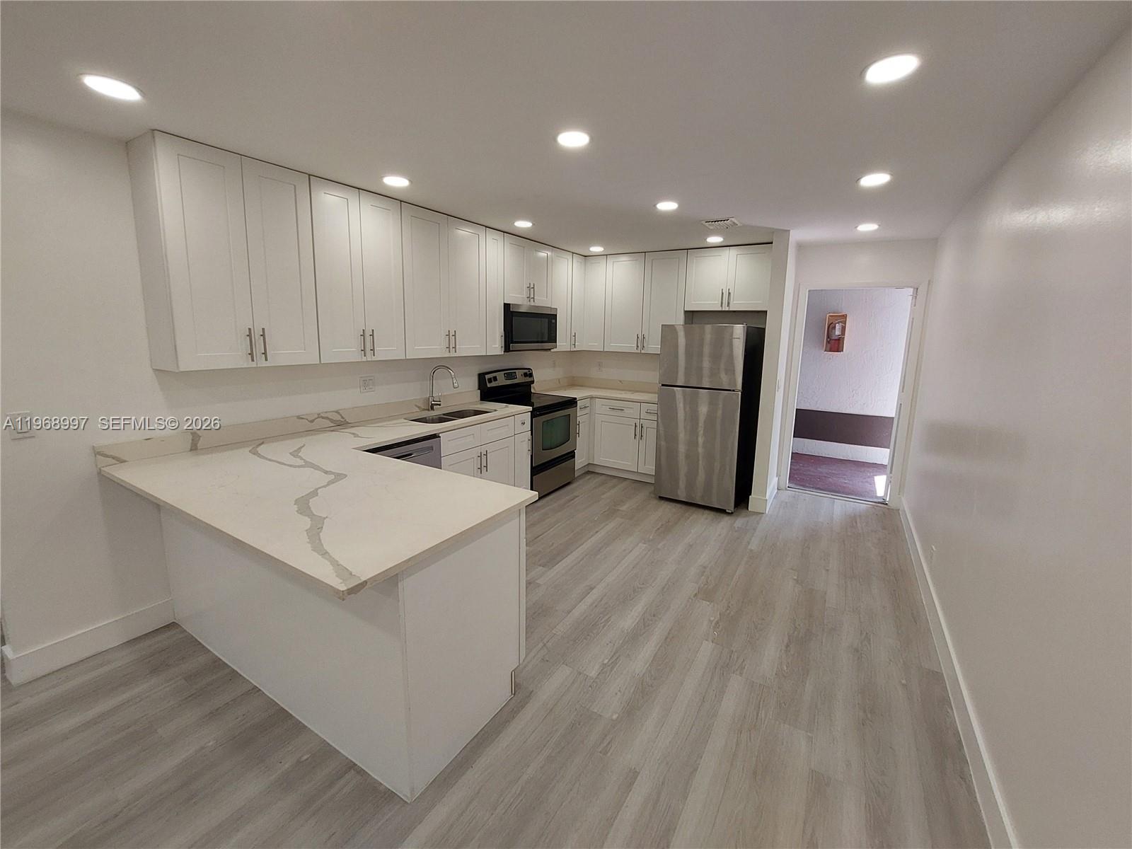 Completely reimagined from the inside out, this stunning 2-bedroom residence sits on an expansive 15,000 sq. ft. lot in the heart of Hollywood. Every inch of the apartment is brand new, thoughtfully redesigned to blend modern style with everyday comfort. Step into a bright, open-concept living space anchored by a massive chef-inspired kitchen featuring sleek stainless steel appliances, generous counter space, and a layout perfect for entertaining or unwinding at home. Contemporary tile flooring flows throughout, creating a clean, cohesive look with a warm, inviting feel. Enjoy the comfort of central A/C, abundant closet space, and the convenience of on-site parking. The bathroom, lighting, flooring, everything has been fully renovated with no detail overlooked. Even better, rent includes water, sewer, and garbage, only electric is separate. A beautifully updated home in a prime location.