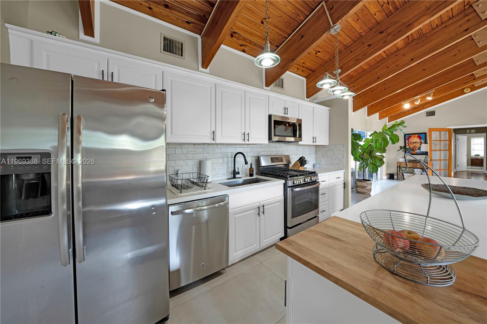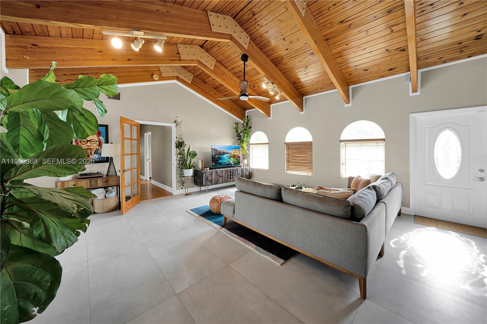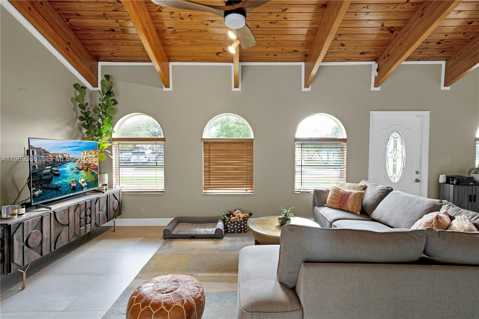 Tastefully updated 3-bedroom, 2-bathroom single-family home with a 1-car garage and a desirable split floor plan designed for privacy and comfortable living, featuring exposed wood ceilings that add warmth and character, hardwood floors throughout, and a gourmet kitchen with stainless steel appliances. Both bathrooms are updated with clean, modern finishes, and the home opens to a private outdoor retreat complete with a pool and ample space for relaxing or entertaining. A double gate provides secure access with room to park a boat, trailer, or recreational toys. The Owner covers pool maintenance, landscaping, and alarm service for added convenience and value.