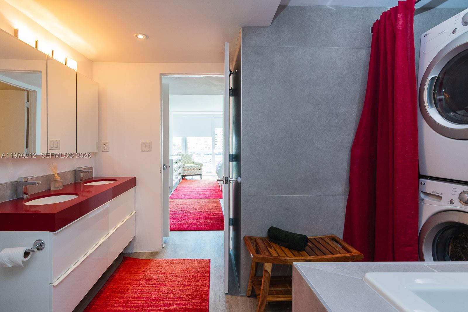 Turnkey ready to move in with astonishing View!! This beautiful modern large and spacious 2Bed-2Bath fully furnished offers you the comfort and privacy you are looking for to enjoy Miami Beach at its best. This unit features a large balcony with amazing view of the intracoastal, Sonos sound system throughout all rooms, wine storage, ice maker, open wide kitchen with top notch appliances, a bathtub, washer & dryer inside, walk in closet, electricity & Internet included. Building offers a lot of amenities, large heated pool, 24h security, a massive gym with latest equipment, lounge room with wi-fi connection, BBQ area, library and kids playroom. Great location close to everything nearby to Bal Harbour Shops Mall and just 15min drive to south Beach.