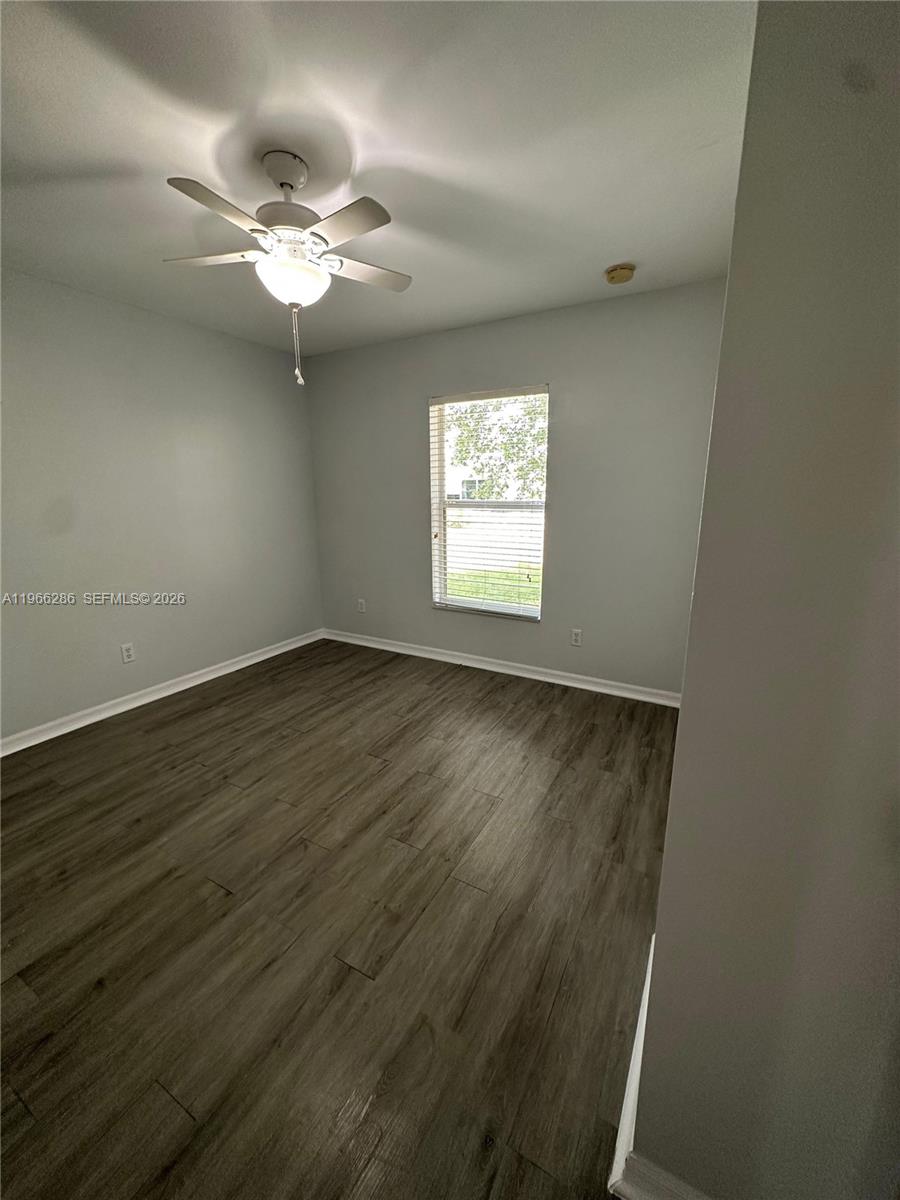 Beautiful three-bedroom, two-bathroom home in the Mirror Lakes area of Lehigh Acres, FL, situated on an oversized corner lot. The home features a stunning backyard with shade trees, a screened-in lanai, and central A/C and heating. Water and electricity are included in the rent.