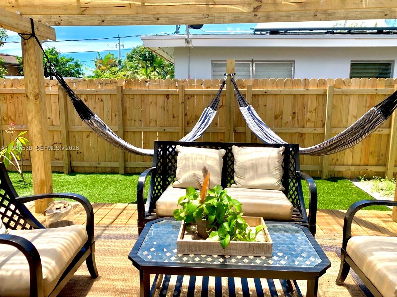 Beautifully renovated 2-bedroom, 3-bathroom furnished home in Fort Lauderdale. This move-in ready property offers a comfortable layout, spacious living areas, and plenty of natural light. The outdoor space is designed for enjoyment and entertaining, featuring full amenities including a BBQ area, bar/shed, turf yard, above-ground pool, and a dedicated dog area. The property also includes a large driveway with ample parking. Conveniently located near major roads, shopping, dining, and just a short drive to beaches and downtown Fort Lauderdale. Utilities included.