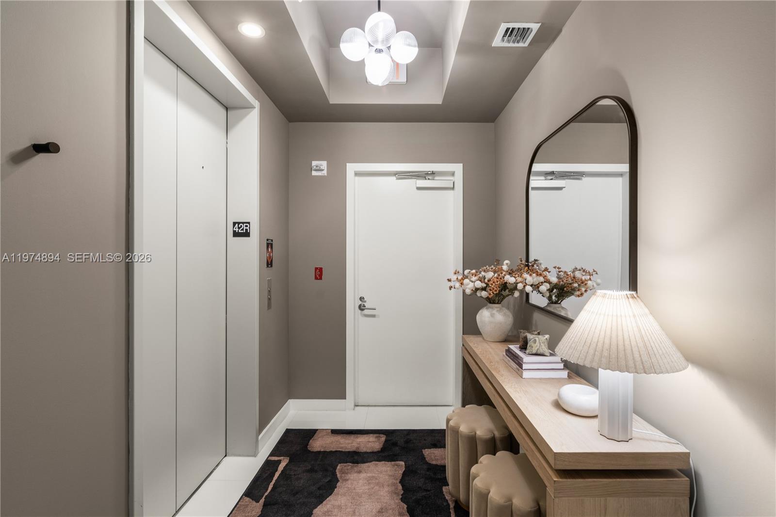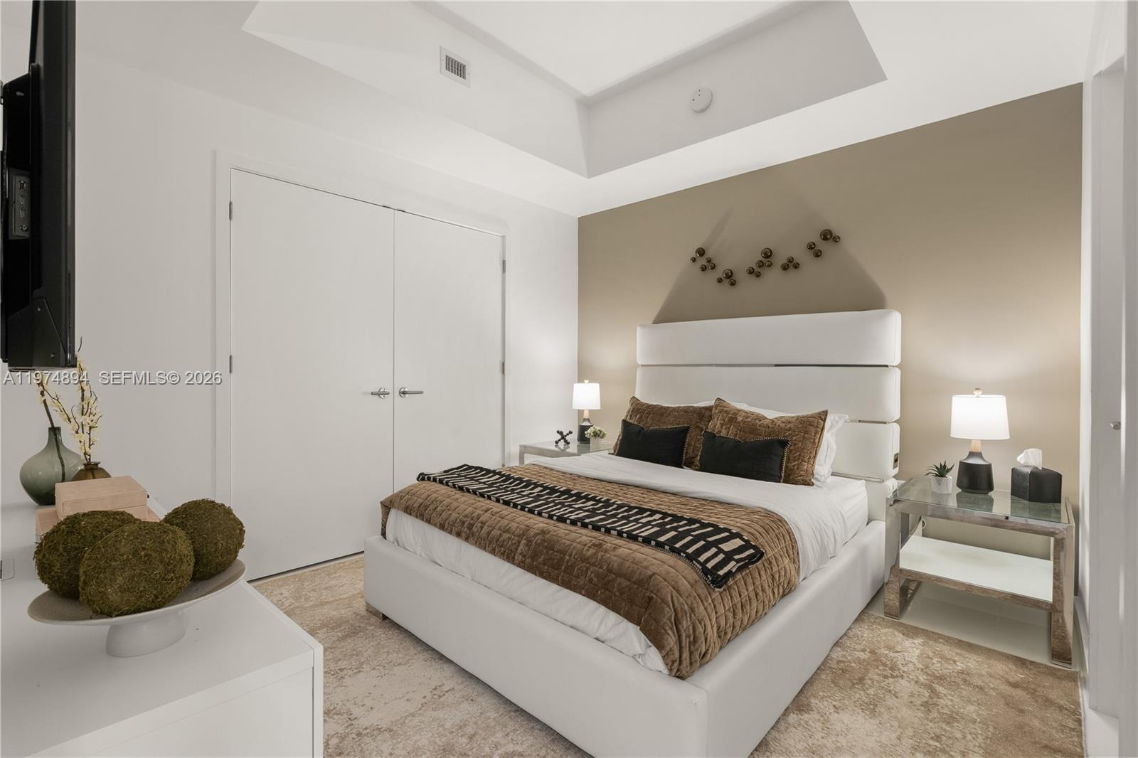 Stunning and rarely available high-floor residence in coveted Line 07. This exceptional home has been professionally curated with brand-new designer furnishings and bespoke accessories, tailored for the most discerning tenant. From the moment you step off your private elevator into an exclusive foyer, you are welcomed by a refined contemporary aesthetic infused with warmth and understated elegance—evoking the ambiance of a palatial five-star resort. Thoughtfully selected details, including custom lighting, LED-accented wood paneling, and designer window treatments, create a serene atmosphere of relaxation and comfort throughout. The den has been expertly converted into a third bedroom with its own full bathroom, offering both flexibility and privacy for guests or family. Residents enjoy access to the unparalleled amenities at Paramount Miami Worldcenter, including five resort-style swimming pools—two located on the rooftop—an expansive spa, state-of-the-art fitness center with boxing ring, tennis courts, basketball, racquetball courts, and even a soccer field. Turnkey furnished annual rental. Also available with a 3-month minimum at $15,000/month.