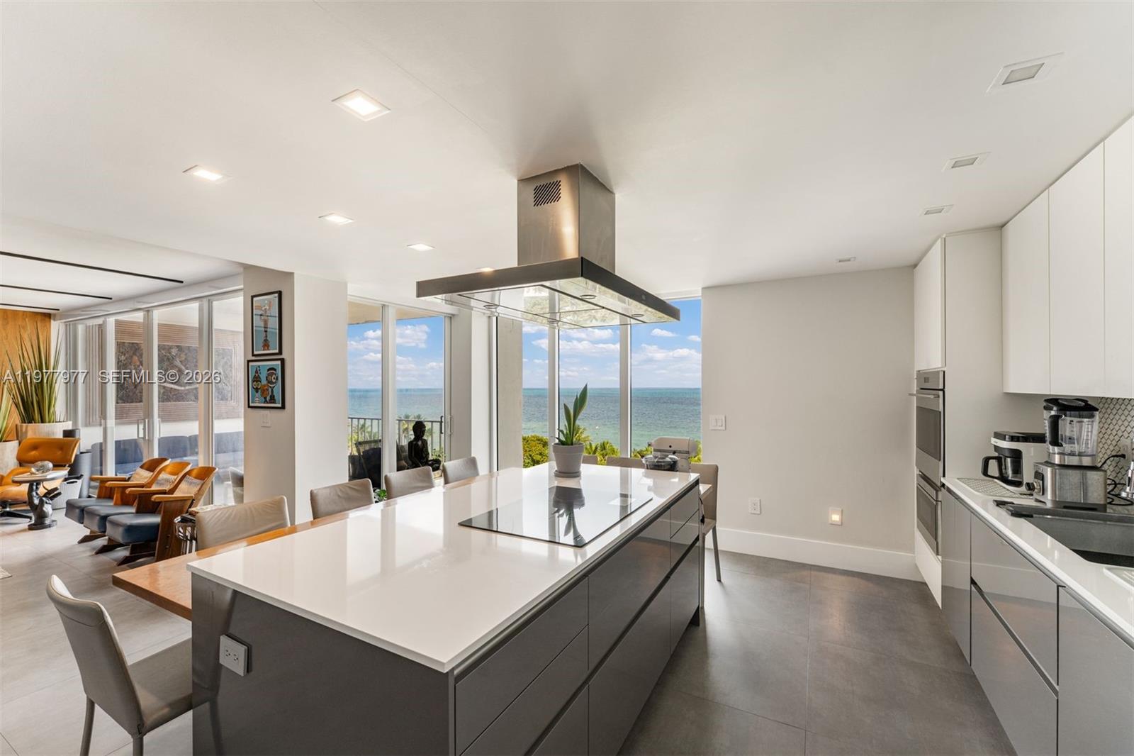 Unfurnished beautifully renovated 7th-floor residence in Casa Del Mar Condominium, one of Key Biscayne’s premier oceanfront buildings. This bright and elegant 2-bedroom plus den, 2 full-bathroom home enjoys expansive views of the Atlantic Ocean, Key Biscayne Beach, and Biscayne Bay, creating a peaceful coastal setting. The residence has been thoughtfully redesigned with high-quality materials and custom finishes throughout. The open kitchen features a modern island with a built-in floating dining table, creating a stylish and functional space for everyday living and entertaining, complemented by high-end appliances. The living room includes a custom wall entertainment center that enhances both design and functionality. Floor-to-ceiling high-impact windows and sliding glass doors fill the home with natural light, and the private balcony is the perfect place to enjoy sunrise views and ocean breezes. The unit is offered unfurnished. Furniture shown in the photos is for staging purposes only and is not included. Casa Del Mar offers resort-style amenities including direct beach access with chairs and umbrellas, two swimming pools, tennis courts, basketball court, fitness center, library, ballroom, and a children’s playroom. Pets and golf carts are not permitted per condominium association rules. Minimum lease term is 12 months. Contact listing agent for additional information and to schedule a showing.