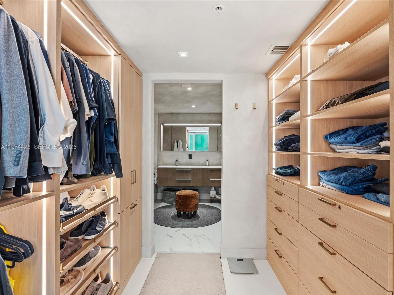 Bijou residence 705 offers a rare opportunity to lease a fully customized residence in one of Bay Harbor Islands’ most exclusive boutique waterfront buildings. This modern 1-bedroom plus enclosed den, 2-bathroom home lives like a true 2-bedroom and offers 1,031 interior square feet plus 166 square feet across two private balconies. The spacious primary suite features custom closets and its own private balcony. The enclosed den with custom doors serves as a guest room, office or second bedroom. Designer upgrades elevate every space including polished concrete flooring, custom limewash walls and built-in cabinetry and storage. A custom dining banquette adds style and functionality. Additional highlights include custom shades throughout, a walk-in laundry room and a built-in safe. The Italian-designed MiaCucina kitchen features marble countertops and backsplash paired with premium Wolf and Sub-Zero appliances. Two valet parking spaces are included. Completed in 2021, Bijou is a boutique 9-story waterfront building along Biscayne Bay with 150 feet of Bay Harbor Islands frontage and dock access. Residents enjoy a rooftop lounge with sweeping bay views, fitness center, residents lounge and 24-hour security. The resort-style pool deck features a 36-foot infinity-edge pool overlooking the bay, whirlpool, cabanas, chaises, fire pit lounge and outdoor bar and dining area. Located two blocks from Bal Harbour Shops and moments from beaches, fine dining and luxury shopping.