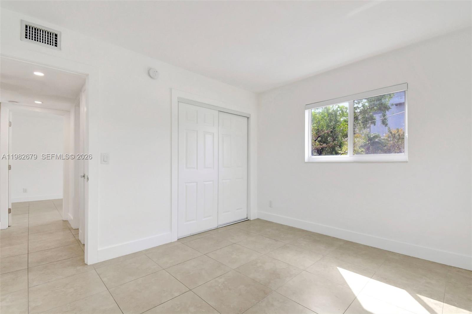 Beautiful and spacious 2-bedroom, 2-bathroom apartment! This fully renovated top floor corner unit features abundant natural light, tile floors, and modern recessed lighting. Enjoy full-size living, dining, and kitchen areas with granite countertops and stainless steel appliances. The bathroom has a shower/tub combination. The ample closet space includes a 2 bedroom closets, a linen closet, two storage closets, and a pantry. The rooms are generously sized with central air conditioning, impact windows and doors, and blackout curtains. You will have two assigned parking spaces with a washer and dryer available in the building.
