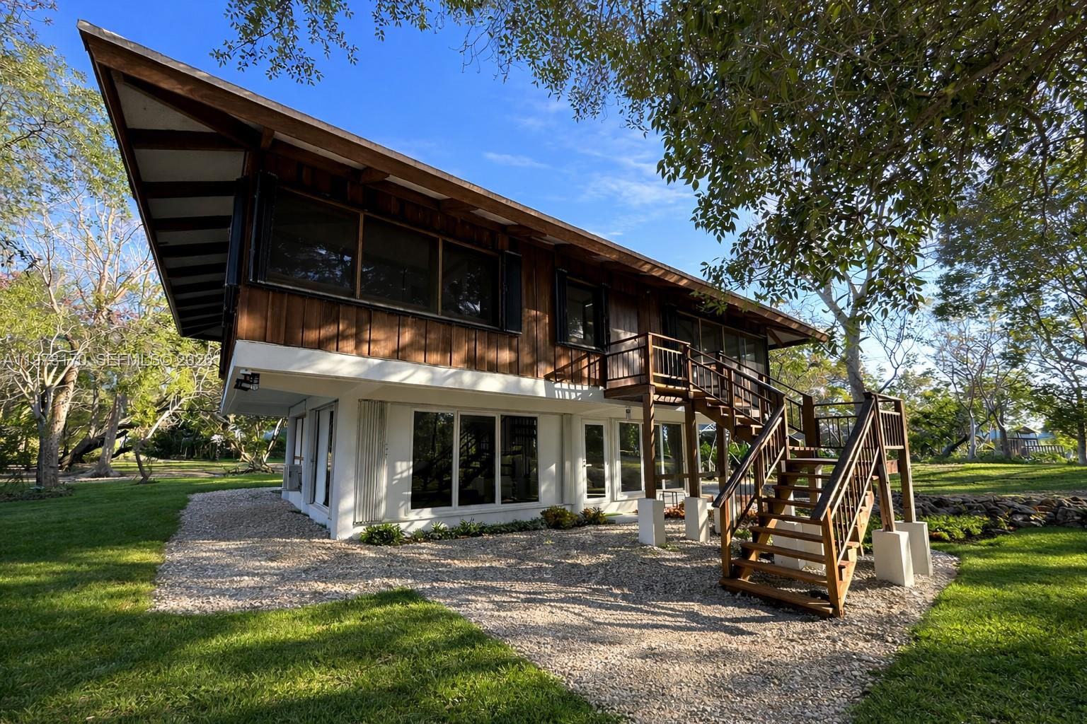 Beautifully updated 4BR / 2.5BA two-story home on a lush 1.64-acre hardwood hammock with extensive parking and space for boats or RVs — a rare find in Miami. Designed by renowned architect Marion Manley, Miami’s first female architect, the home blends SoFlorida tropical and Keys-style architecture with subtle Japanese influences. It features soaring ceilings, exposed pine beams, and abundant natural light. Surrounded by native landscaping and butterfly-attracting plants (19 species observed), this property is a true nature lover’s sanctuary. Landscaping maint is included in rent. Enjoy wide canal frontage with ocean access, perfect for canoeing and waterfront living. A rare opportunity to rent a one-of-a-kind architectural home immersed in nature.