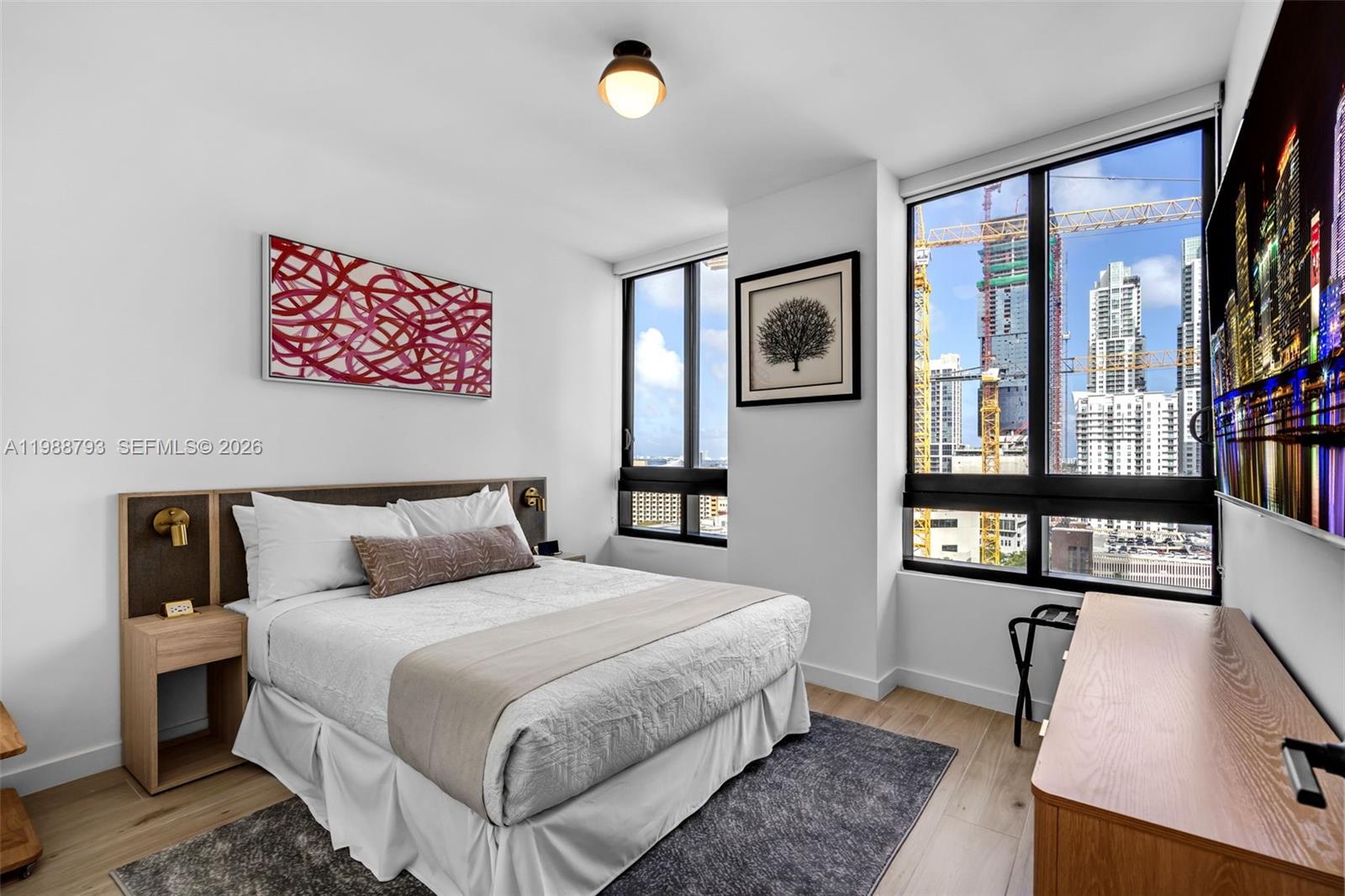 This beautifully appointed 2-bedroom, 2-bath apartment offers the perfect combination of space and comfort. The master bedroom includes a King-size bed and en-suite bathroom, while the second bedroom has a Queen-size bed and ample storage. A fully equipped open kitchen connects to the dining and living areas. The sofa bed in the living room provides extra sleeping space if needed. The unit features central air conditioning, in-unit washer and dryer, and large windows with abundant natural light. Amenities: resort-style pool and rooftop terrace with bar and social lounge, a fully equipped gym, spa with sauna/steam room, basketball and racquetball courts, and multiple activity spaces — perfect for relaxation, fitness, and recreation. Parking Information -One complimentary parking space is available at the Miami Parking Authority – Courthouse Garage, located at 40 NW 3rd Street, Miami, FL 33128 (about a 2-minute walk / 400 feet from the building lobby). -To enjoy free parking, the vehicle must exit and re-enter the garage at least once every 24 hours. -Additional parking spaces are available for $15 per day per vehicle. Please note: -There are no daily resort fees, and on-site parking is not available on-site. -Unit access is through key fobs. Lost/non-returned key-fobs will result in a $50 + admin fee expense.