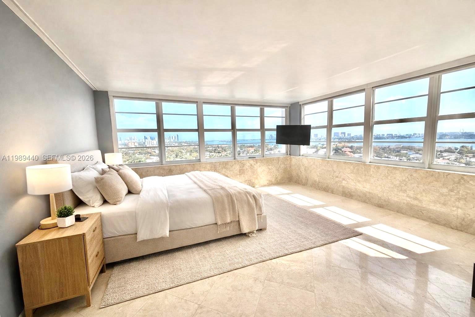 Rare corner 2BD/2BA just one floor below the top floor, offering the best views currently for sale in the building. This bright, spacious residence features sweeping 180° bay and skyline views from every room, tiled floors throughout, a generous living area, and two bedrooms with stunning water vistas. Maintenance includes water, cable, and internet. Residents enjoy a large pool, gym, and sauna. Prime location minutes to the beach, Bal Harbour, Aventura Mall, Whole Foods, top restaurants, shopping, and easy access to I-95.