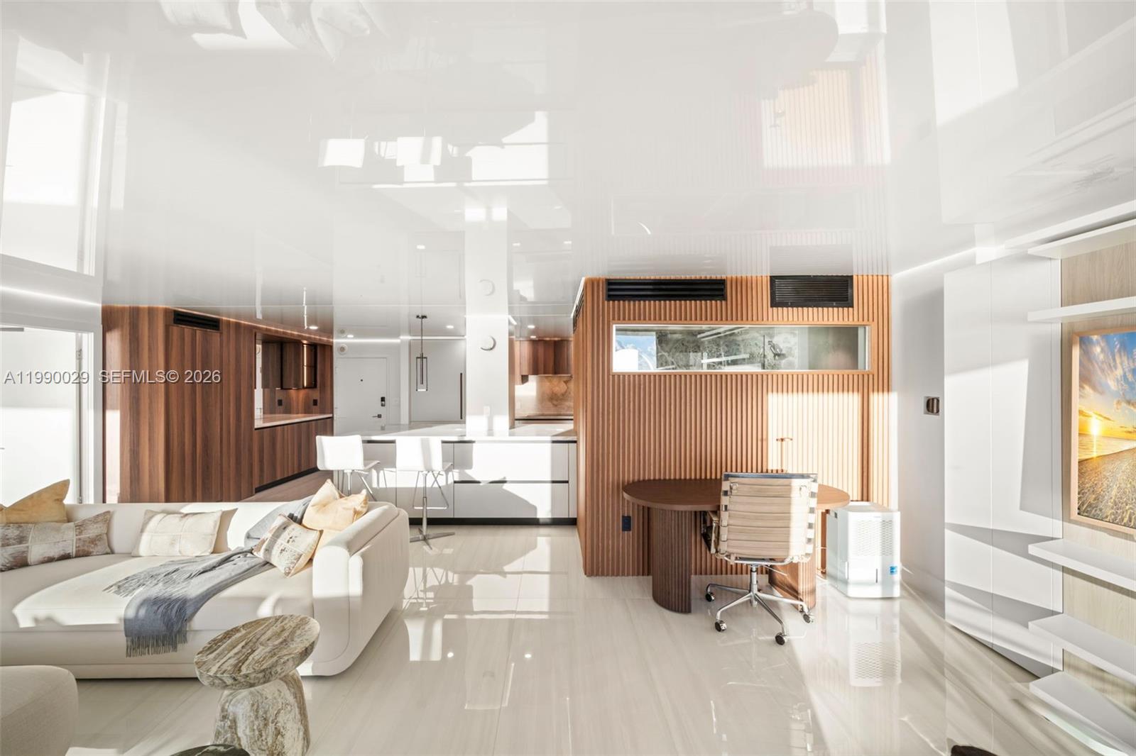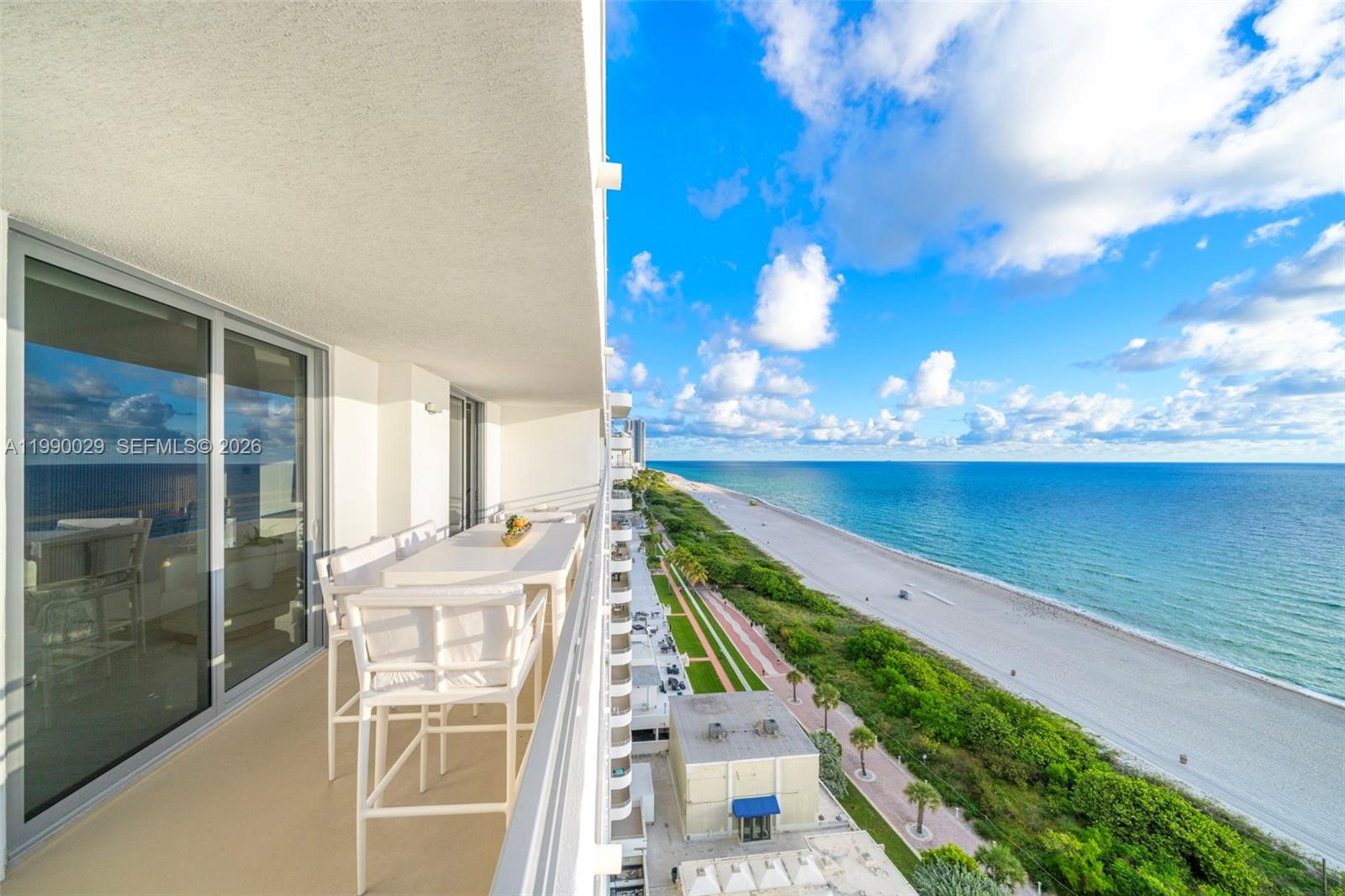 Experience luxury coastal living in this thoughtfully designed, fully customized oceanfront residence. A true statement in contemporary design, this fully renovated, turnkey, and furnished unit blends custom stonework, marble, and rich wood finishes to create an atmosphere of calm sophistication. Enjoy a full ItalKraft kitchen featuring premium appliances by Sub-Zero, Wolf, and Bosch. Every detail has been meticulously curated—from the Anima Domus revolving TV/bed system to the spa-inspired primary bath with open-concept custom closets and elegant stretch ceilings. Relax on your 34-foot wind-protected balcony, offering uninterrupted, direct ocean views. On-site dining at Lola’s Restaurant. Available for immediate occupancy, 6-month minimum lease.