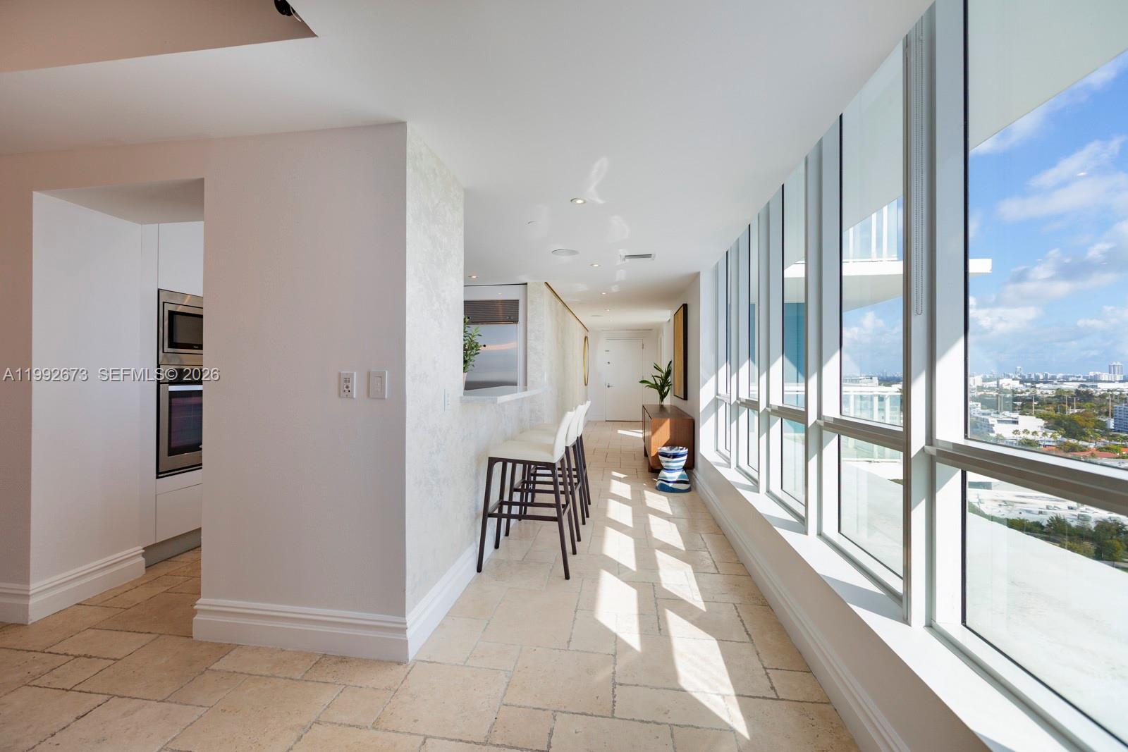 Freshly renovated 3 bedroom 3.5 bath corner unit. This unit has views of both the bay and the ocean. Fully furnished with artefacto furniture, onare and california closets and nice artworks. This unit is a rare find in the south beach location