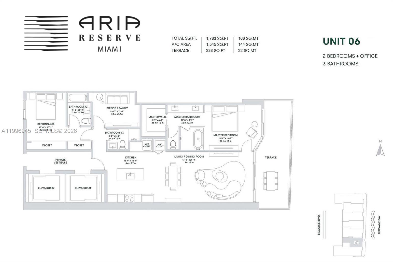 Brand-new 2 bed + Den, 3 bath furnished luxury residence at Aria Reserve in Edgewater. Enjoy breathtaking direct bay views from a low floor from your private terrace and floor-to-ceiling glass windows. Features include open- concept kitchen with premium appliances and private elevator foyer. The spacious den is perfect for an office or guest room. Includes 1 assigned parking space. Resort-style amenities: multiple pools, spa, fitness center, marina, tennis courts, kid’s splash park, wine lounge & more. Experience Miami waterfront living at its finest.