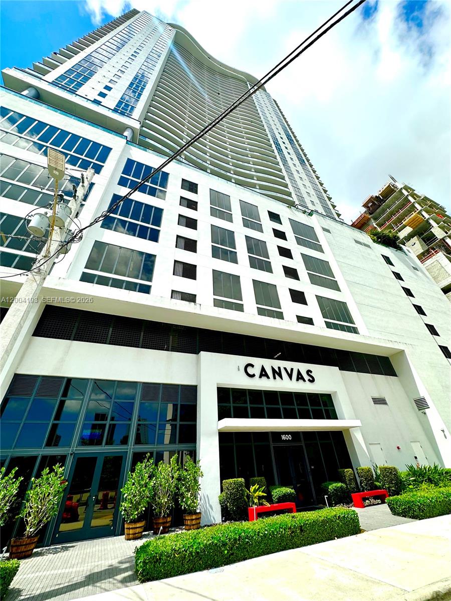 Stunning 1B+Den & 1.5 Baths at Canvas. Experience vibrant urban living in this beautifully designed unit, breathtaking panoramic city views, open-concept layout features a modern kitchen with sleek finishes, a spacious living area and a versatile den perfect for a home office or a guest space. Walking closest, ensuite bath. Washer and dryer inside the unit. Enjoy resort-style amenities including two pools, a state-of-the-art fitness center, spa, sauna and treatment room, a yoga loft, racquetball court, theater, social room, business center, 24/7 concierge and more. Steps from Wynwood, Downtown, Brickell and Miami's best dining, culture and entertainment.