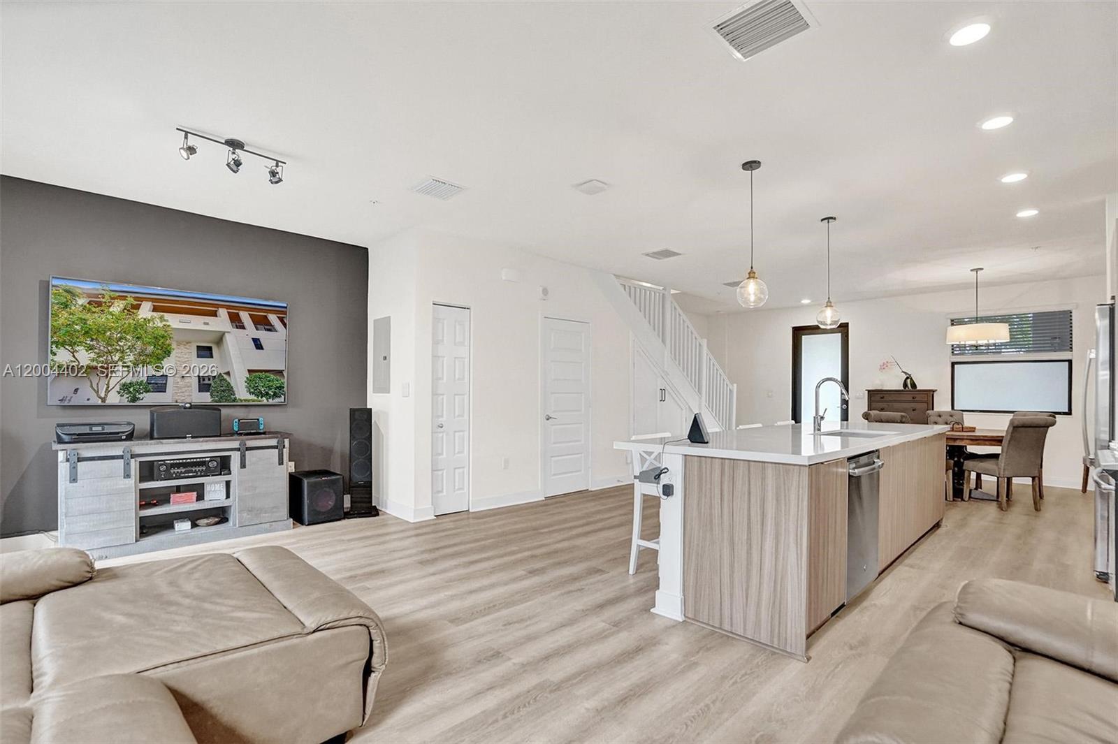 Live in first floor modern two story Smart Home with patio, 3 Bedrooms & 2.5 Baths, stylish Kitchen with Entertaining Island, Quartz Countertop, Stainless Steel Appliances with Smart Home features. Spacious Master Bedroom with two walk-in closets. Unit located on the First floor witha backyard, lots of natural light and no neighbor in the back. Vinyl flooring in main areas and carpet on second floor. Impact windows. One of the Largest Clubhouses in Doral with Resort-style Pool, Jacuzzi, Playground and Splash Park, Fitness Center, Tennis Court, Basketball Course, Business Center and Soccer Field. Excellent location, minutes from A+ schools.