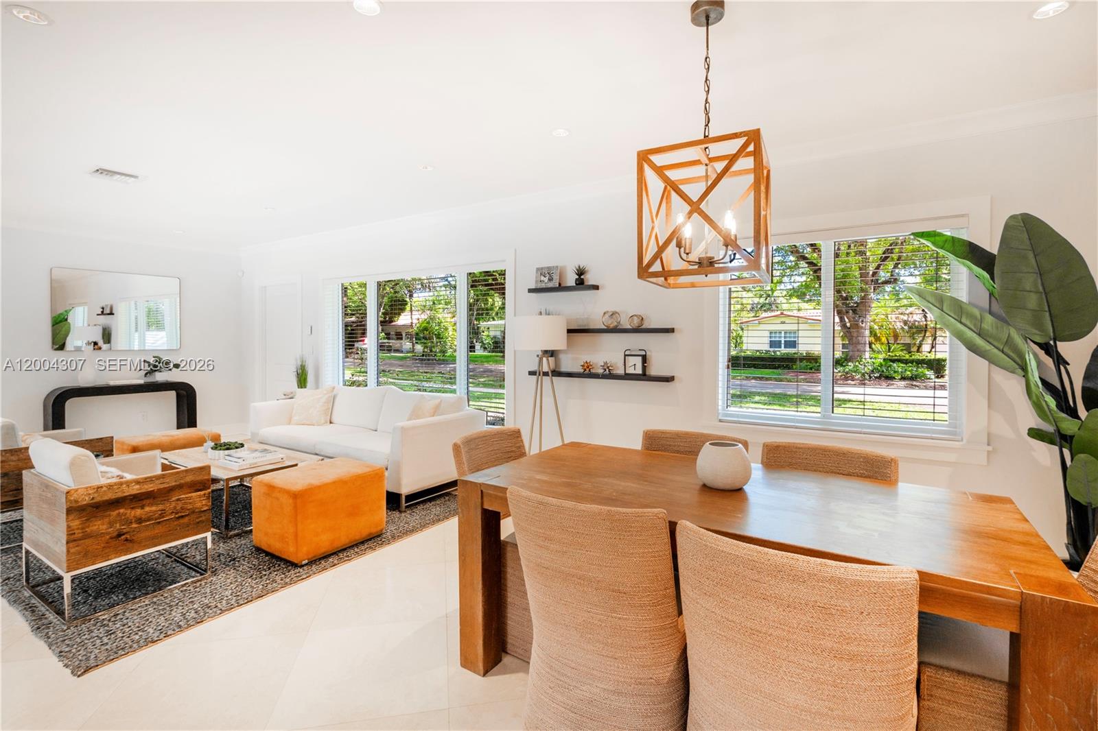 Available for 6 month lease. Immaculate and fully furnished, this beautifully remodeled 3-bedroom + office, 2-bath residence sits on a picturesque tree-lined street in Coral Gables. Approximately 1,900 sqft, including office. Thoughtfully redesigned from top to bottom, the home is filled with natural light and features a functional open concept living space. The fully renovated kitchen and bathrooms showcase high-end finishes. Set on an expansive 11,550 SF lot, the outdoor space is exceptional, featuring mature oak trees and a sparkling pool, perfect for relaxing or entertaining. Additional highlights include hurricane impact windows and doors and a versatile office/den ideal for a home office, playroom, or guest space. A rare opportunity to lease a turnkey home in one of Coral Gables’ most desirable neighborhoods.
