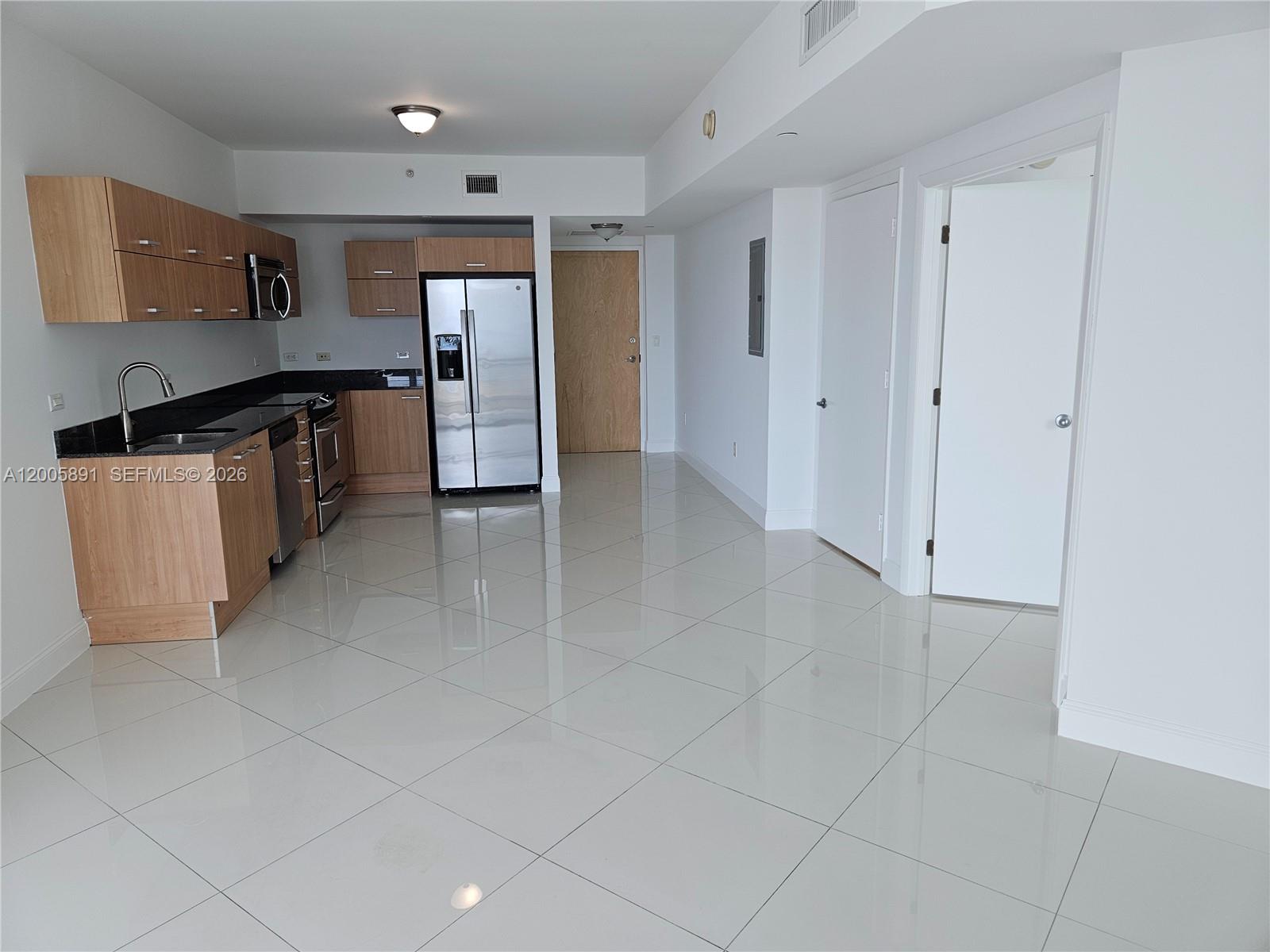 Excellent higher floor 1bed/1bath condo at The Wind. This unit features city views facing NE, stainless steel appliances, a spacious balcony, ceramic flooring, granite counter tops and the bedroom is enclosed!. Please look at 2nd photo for the floor plan, it's freshly painted, cleaned and ready to move in. Building amenities include valet parking, pools, sauna, hot tubs, exercise room, a theater and more. Location couldn't be better, just a 5 minute walk to Brickell City Centre.