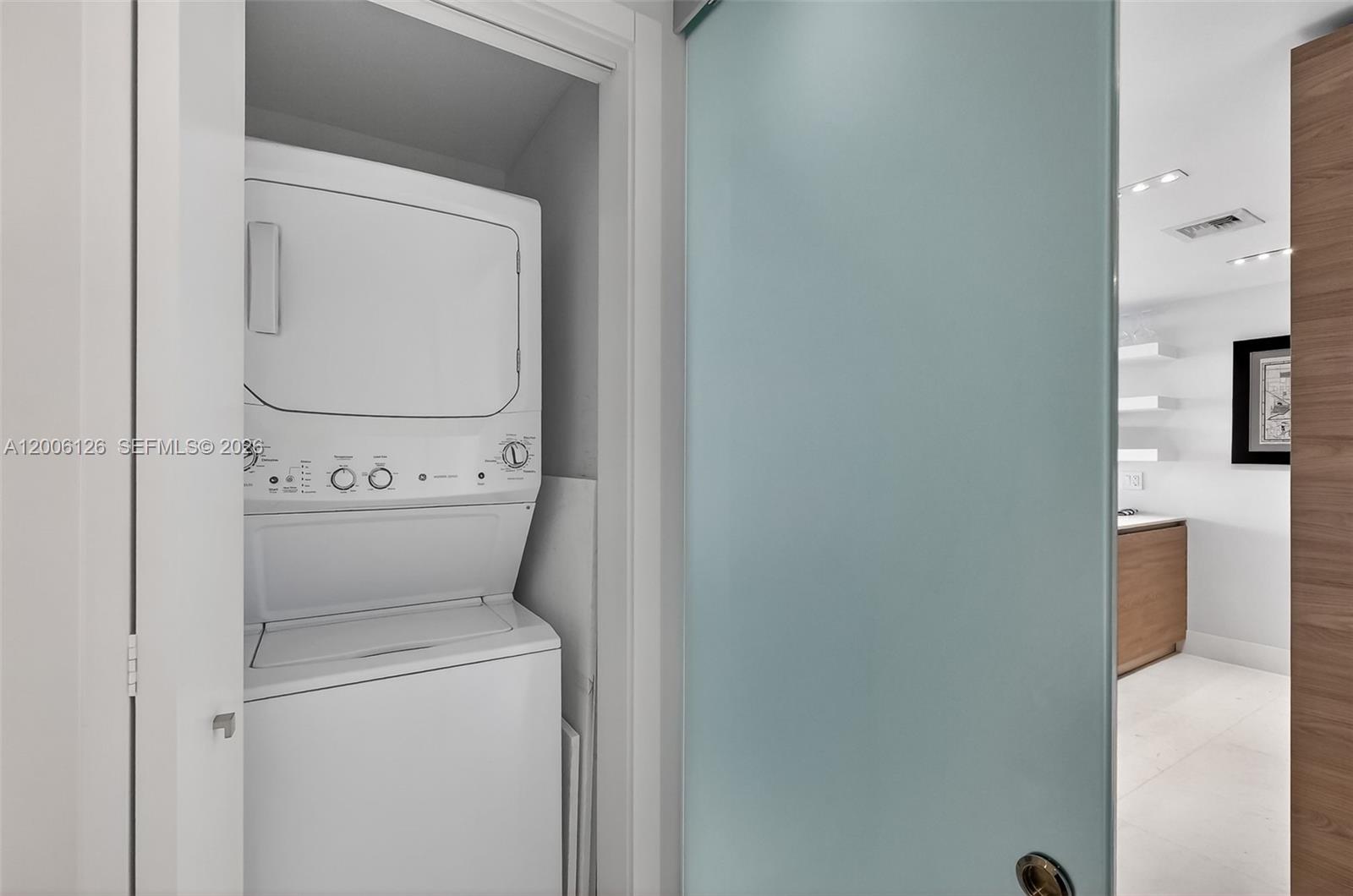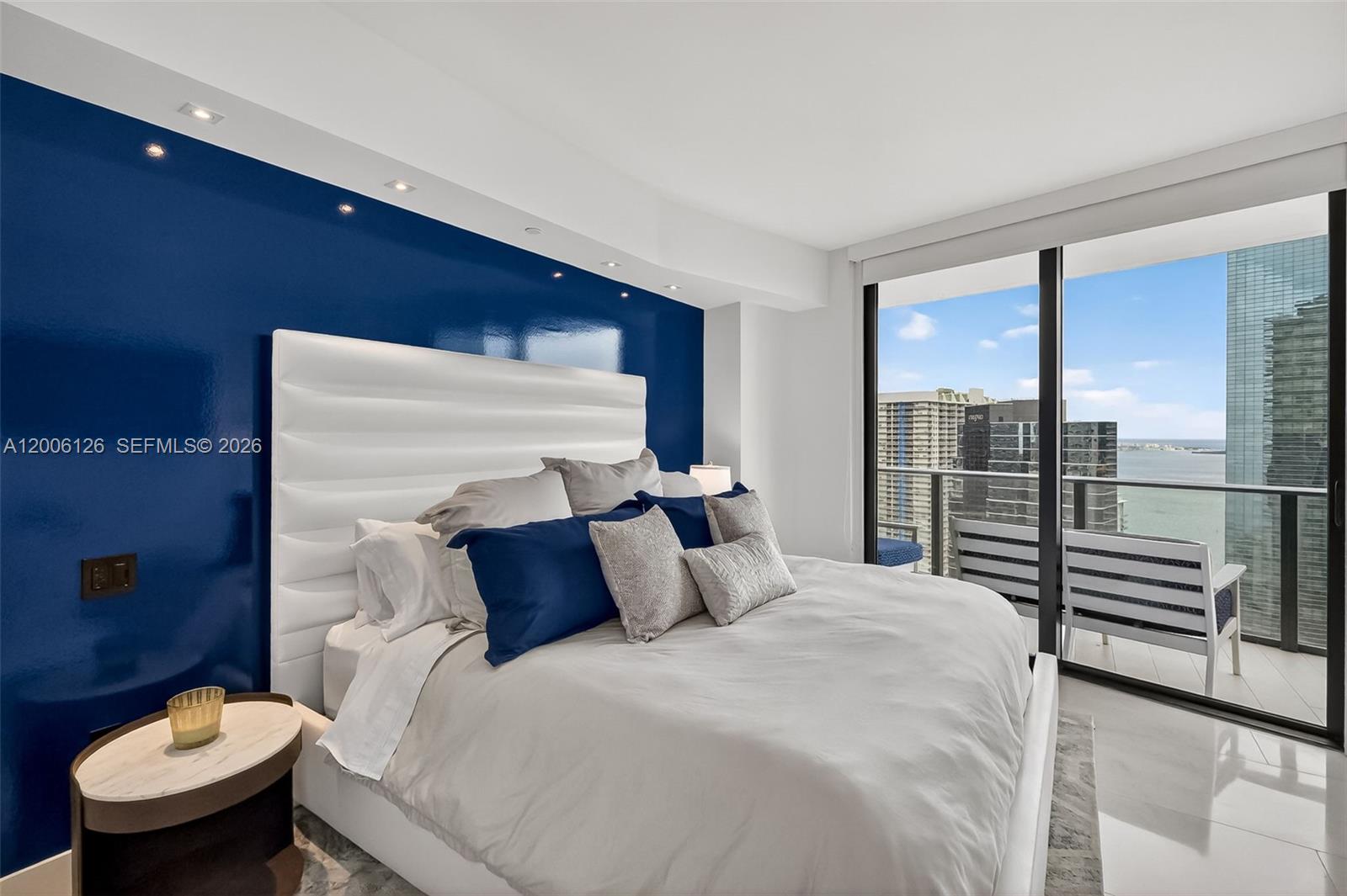 Live at the extraordinary SLS Brickell! This gorgeous 1-bed, 2-bath + den is one of the largest 1-bed floor plans in the building. Facing east, this residence offers stunning panoramic bay & city views. The spacious balcony is perfect for relaxing or entertaining. Features include designer finishes, custom lighting washer/dryer, and shelving while the open kitchen has stainless steel appliances, plenty of cabinets, and quartz countertops. The den is great for flexible use and is already set up with a queen bed, TV and shelving. Great closets, window shades + blackouts in bedroom and the large porcelain tile floors complete the space. Enjoy 5-star amenities: a rooftop pool, full-service spa, state-of-the-art fitness center, clubroom, ballroom, kid’s room, two pools, 24-hour concierge and security & top restaurants right downstairs. The perfect Brickell location close access to highway without all the center Brickell traffic, stroll to tons of cafes, dining, shopping, Brickell City Center & nightlife. The perfect blend of luxury and comfort. Easy to show. Schedule your showing today! ?Available May 1, 2026.