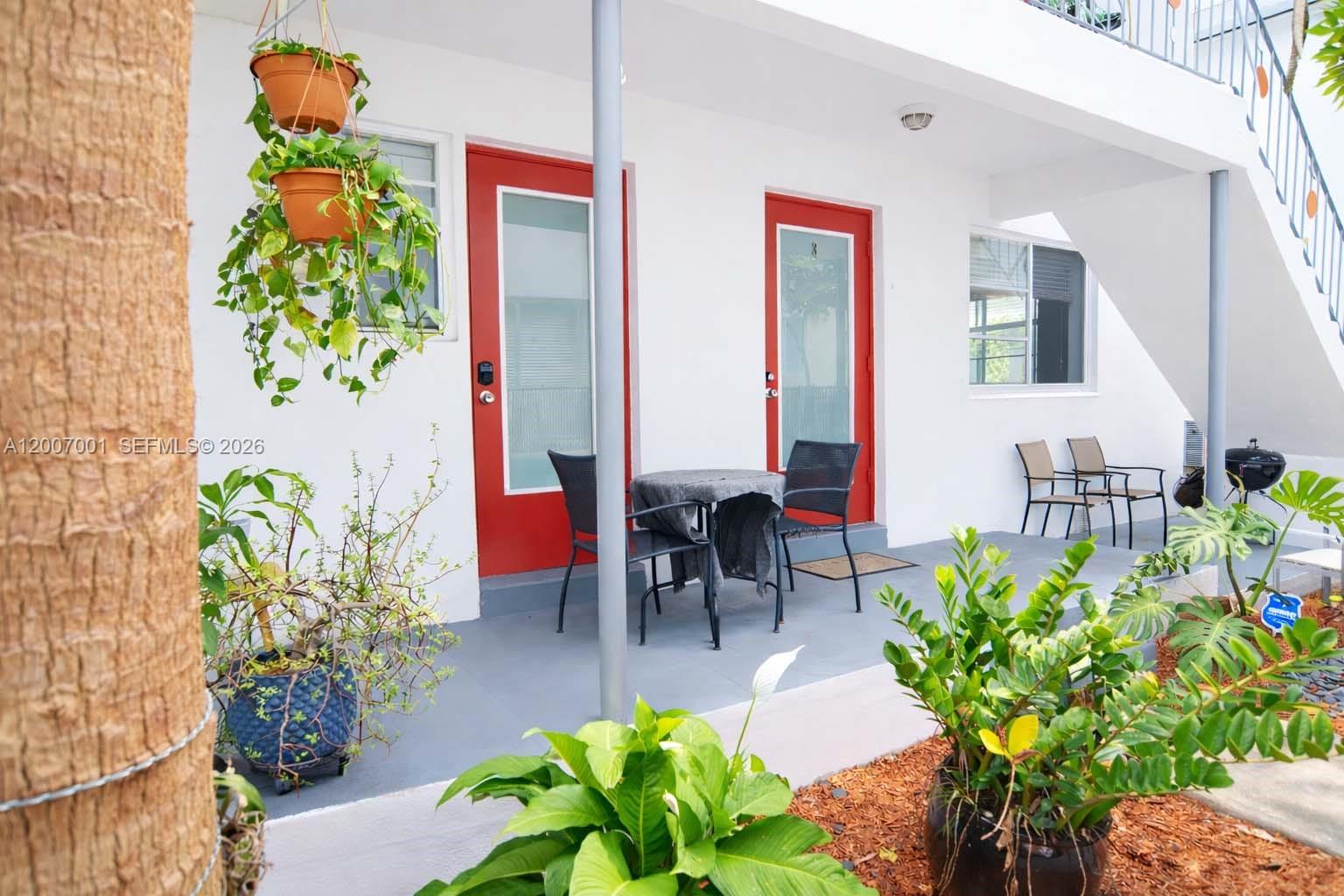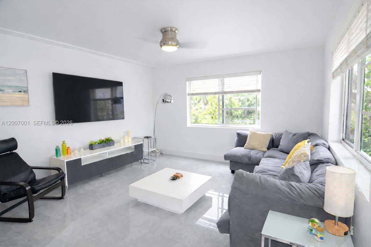Gorgeous, very spacious, fully furnished and completely remodeled 1-bedroom, 1-bathroom corner unit. This residence features a private patio, elegant marble bathroom, separate dining area, and a top-of-the-line kitchen with stainless steel appliances and granite countertops. The unit offers two walk-in closets and a convenient in-unit all-in-one washer/dryer, with additional laundry facilities available on-site.