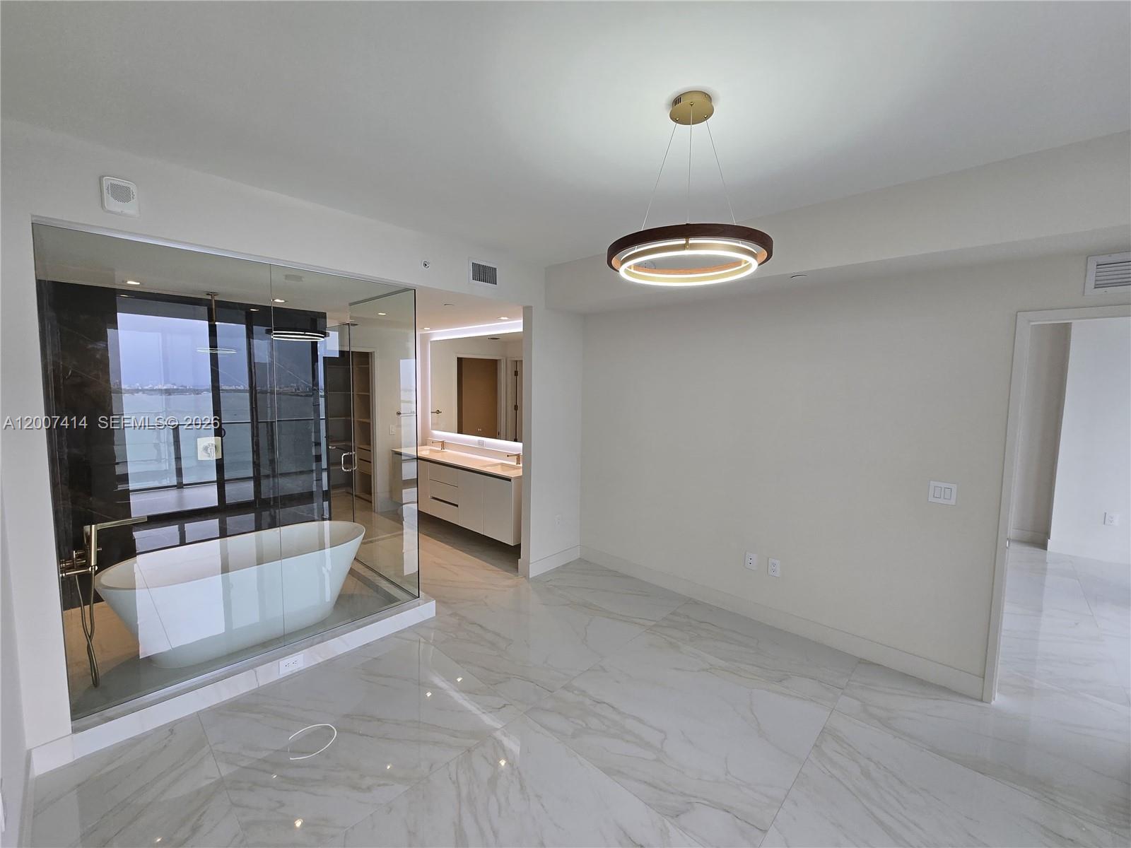 Luxurious modern unit on the 31th floor with beautiful panoramic views, brand new, with an open layout of 1 bedroom + Den + 2 full bathrooms, featuring top-of-the-line finishes: LED mirrors, tempered glass showers, luxurious bathtub. Electric curtains, lamps, and custom walk-in closets. Open-concept kitchen with top-of-the-line appliances, numerous upgrades. The Den can be adapted as an office or guest suite. Floor-to-ceiling windows and a private terrace offer direct views of Biscayne Bay and the Miami skyline. Exclusive amenities: private marina, 3 pools (including a semi-Olympic pool), spa, sauna, full gym, kids’ playground, sports courts, mini golf, pet park, barbecue area, and more. Prime location, steps from museums and theaters, and minutes from Wynwood, Miami Design District, Midtown, Downtown, Brickell, and Miami Beach. Whole Foods Market, Trader Joe’s, and Publix nearby.