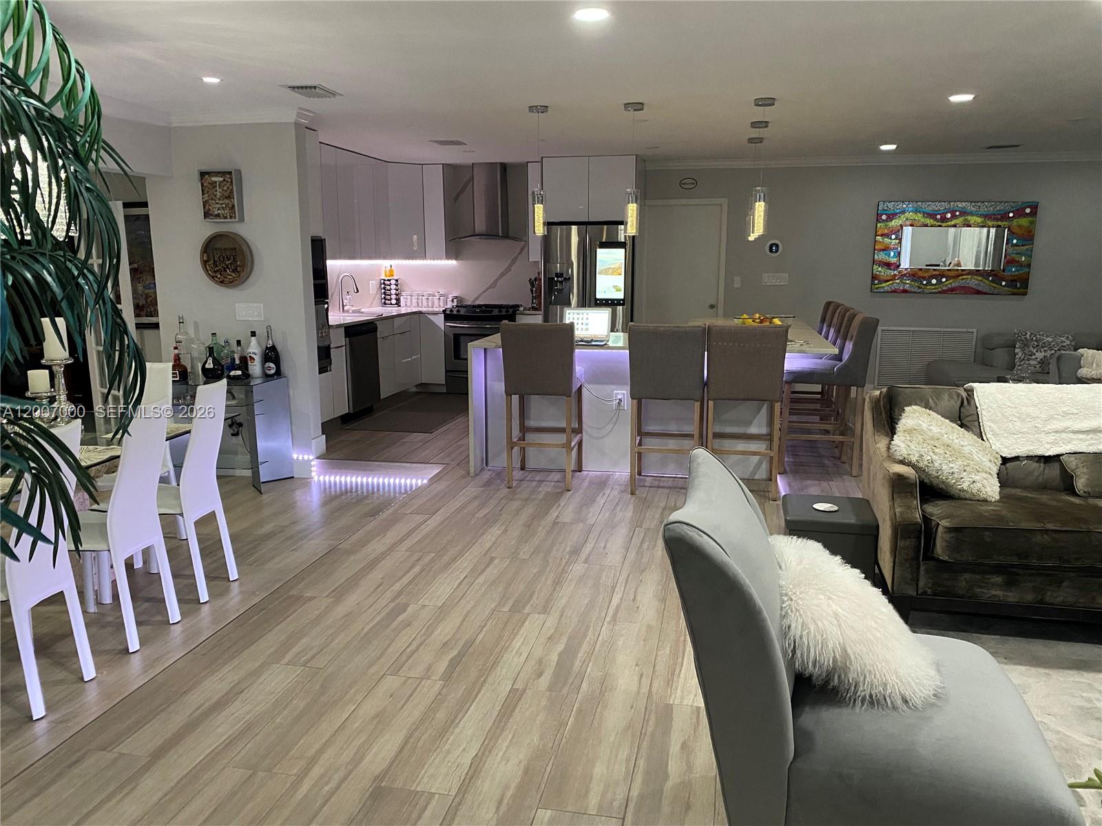 Welcome to this stunning oasis single family home located in the heart of Hollywood- A 4 bedroom 2 baths Inground pool, Two car garage and plenty of driveway parking. This home has been tastefully remodeled with a modern open layout perfect for relaxing and entertaining. The stunning kitchen features wide Kalamata quartz counters and water falls on both ends. Stainless steel appliances including a smart Samsung refrigerator. Spanish ceramic tiles including the garage. Modern LED lighting and ceiling fans. Fully renovated bathrooms. Hurricane shutters, high rated windows, high impact front door. Fully fenced back yard for your enjoyment and privacy with beautiful landscaping with newly planted Sylvester Palms, Avocado tree.