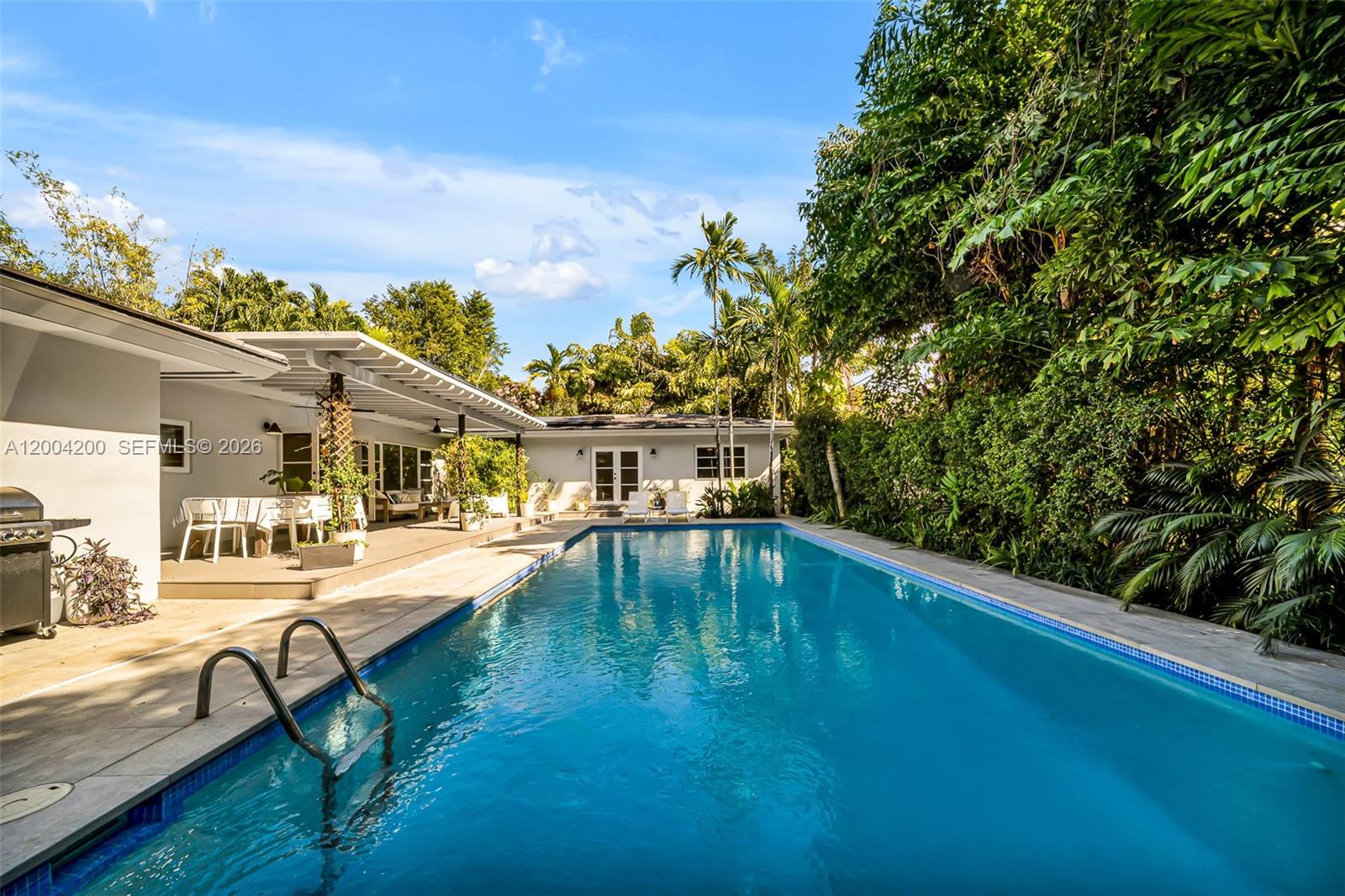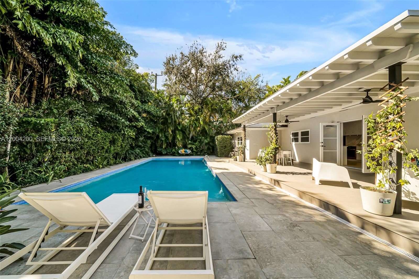 Beautifully renovated home nestled on a quiet, tree-lined street in the heart of the Coral Gables Riviera neighborhood. This spacious residence offers 4 bedrooms and 4 full bathrooms, with an open-concept kitchen and bright, airy living areas that flow seamlessly to a private outdoor retreat featuring a Heated Pool, ideal for entertaining or simply unwinding. Eco-conscious living is made easy with solar panels that significantly reduce energy consumption and monthly utility costs. The home also features hurricane impact windows and doors, a covered 2-car parking area with additional guest parking, and a versatile office/den perfect for a home office, playroom, or guest space. A rare opportunity to lease a turnkey home that blends style, sustainability, and tranquility — all in one of Coral Gables' most sought-after addresses. Available Furnished or Unfurnished.