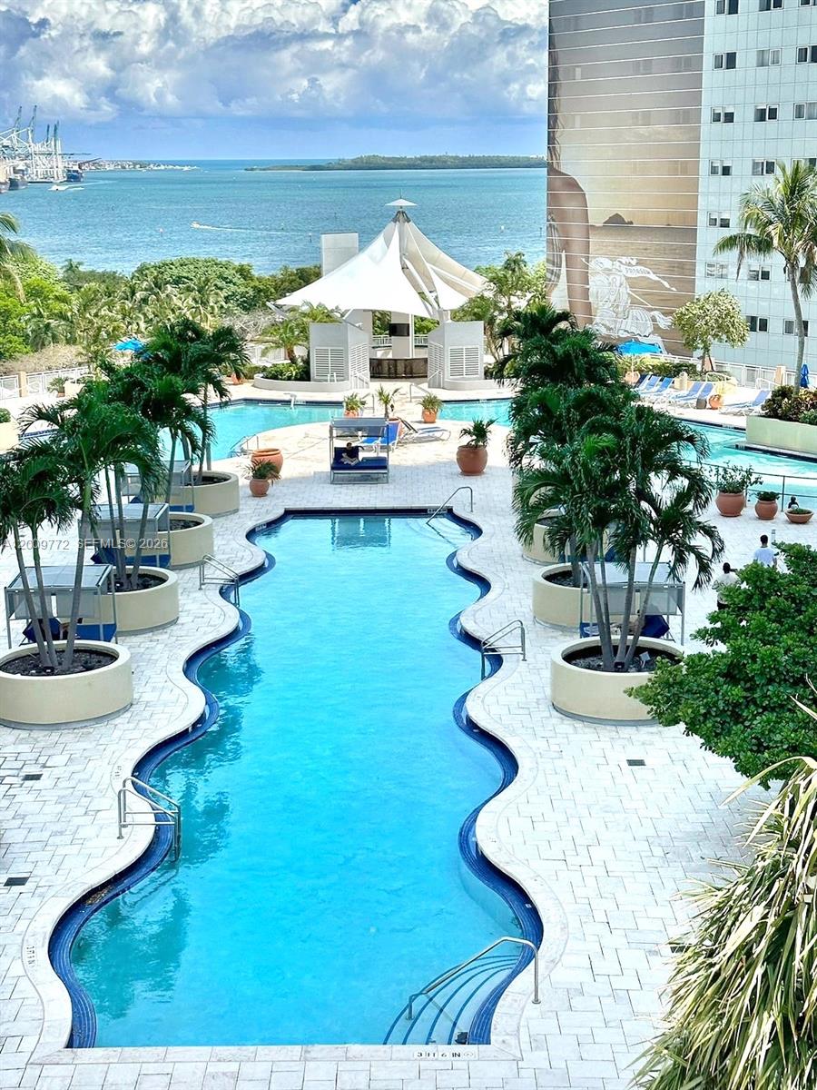 Impeccably Furnished and fully equipped large 1BR / 1BA at Vizcayne South Tower! New laminate floors, custom closets, marble bathroom with bathtub and separate shower. One assigned parking space and storage. Amenities include; a 3 story clubhouse with four pools, Spa, clubhouse, movie theater and an amazing gym. Great location across from Bayside Marketplace and American Airlines Arena. Within walking distance of the Pérez Art Museum, the Science Museum, Restaurants and Stores.