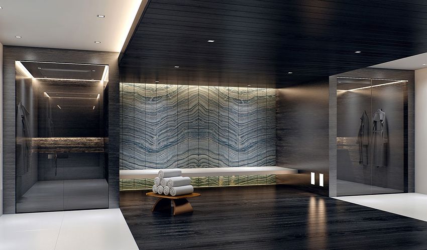 Все жилые помещения начинаются с 4 этажа, имеют высоту потолков от 3.05 до 3.65 м, большие окна от потолка до пола, изящно изогнутые приватные террасы, с панорамным видом на побережье и океан.