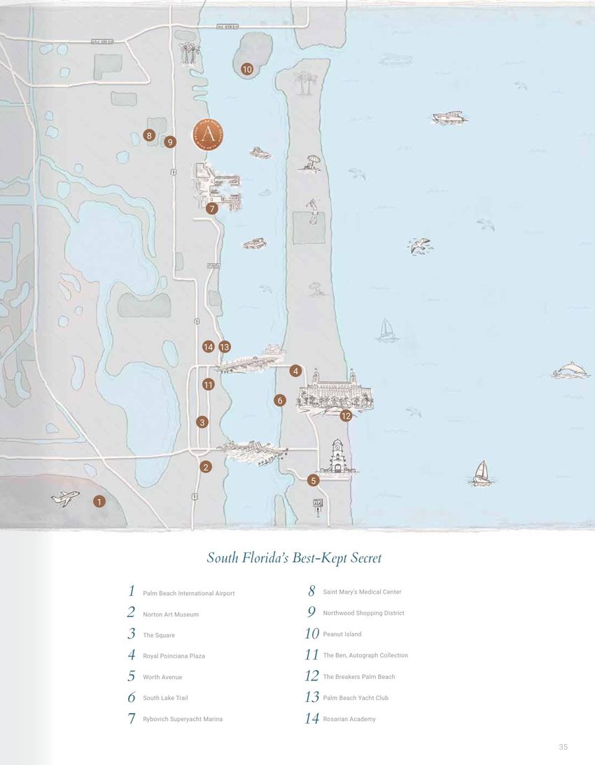 • Менее чем в 3 км от порта Палм-Бич