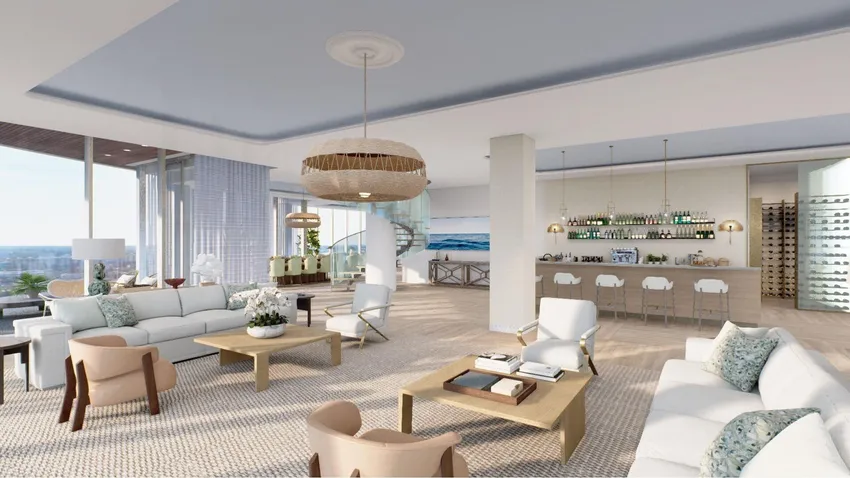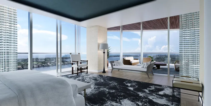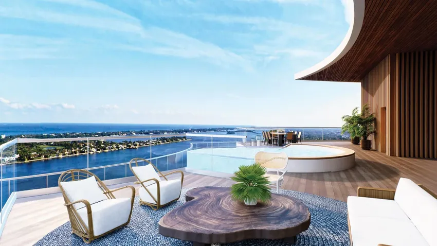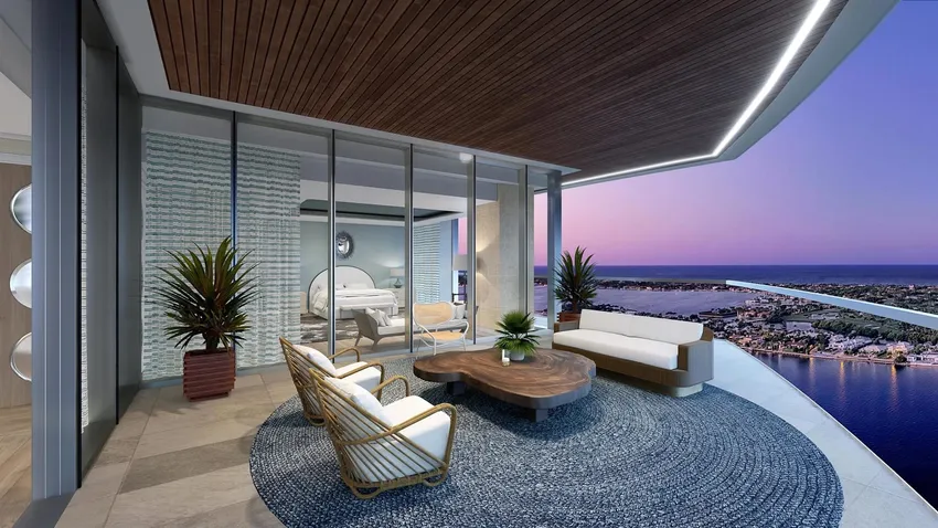 Глубокие балконы с закругленными углами обеспечивают более 92 квадратных метров открытого пространства для развлечений. Forté предлагает захватывающие виды, освещенные солнцем интерьеры и обтекаемую роскошь, которые устанавливают новые стандарты жизни в Палм-Бич.